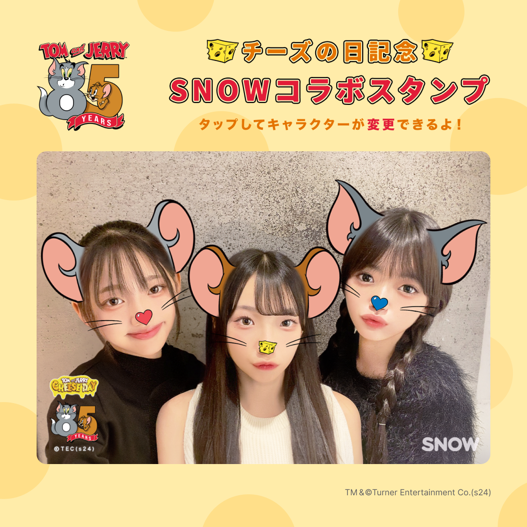 チーズの日を記念して、全世界で約4億人以上が利用中の大人気AIカメラアプリSNOWで『トムとジェリー』コラボスタンプが11月8日(金)〜11月24日(日)までの期間限定で登場!耳が動き出す!トムとジェリーとタフィーになりきろう!