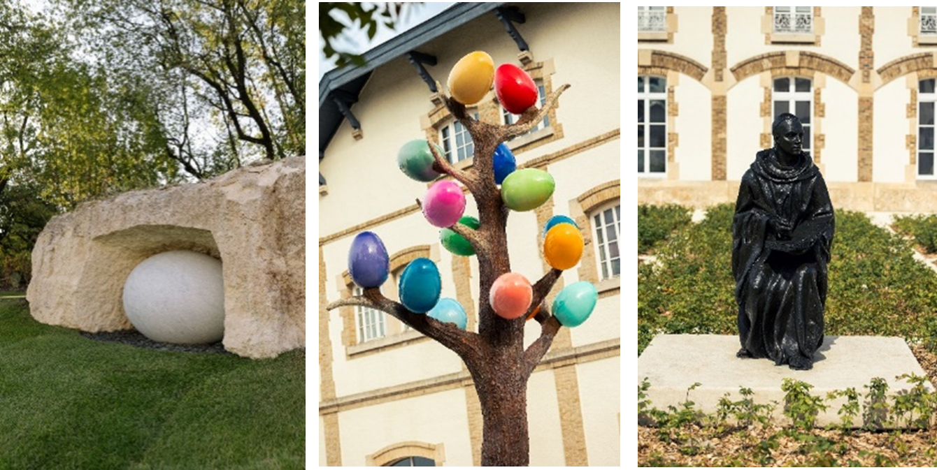 ルイナールの美術界への足跡を反映し、敷地内のいたるところに環境価値を共有する国際的なアーティストたちの作品が散りばめられています。小道や中庭、アーティスト・ガーデンには、ルイナールの委嘱による作品が数多く展示され、メゾンの価値観や芸術に対する様々なビジョンを示しています。ブドウの木、ガラス、石灰岩、木材、金属、泡の音、ブドウの葉。使用されている素材は、シャンパーニュ地方の生物多様性から気候や土壌条件まで、さまざまな要素や懸念を反映し、多様な芸術的アプローチを体現しています。