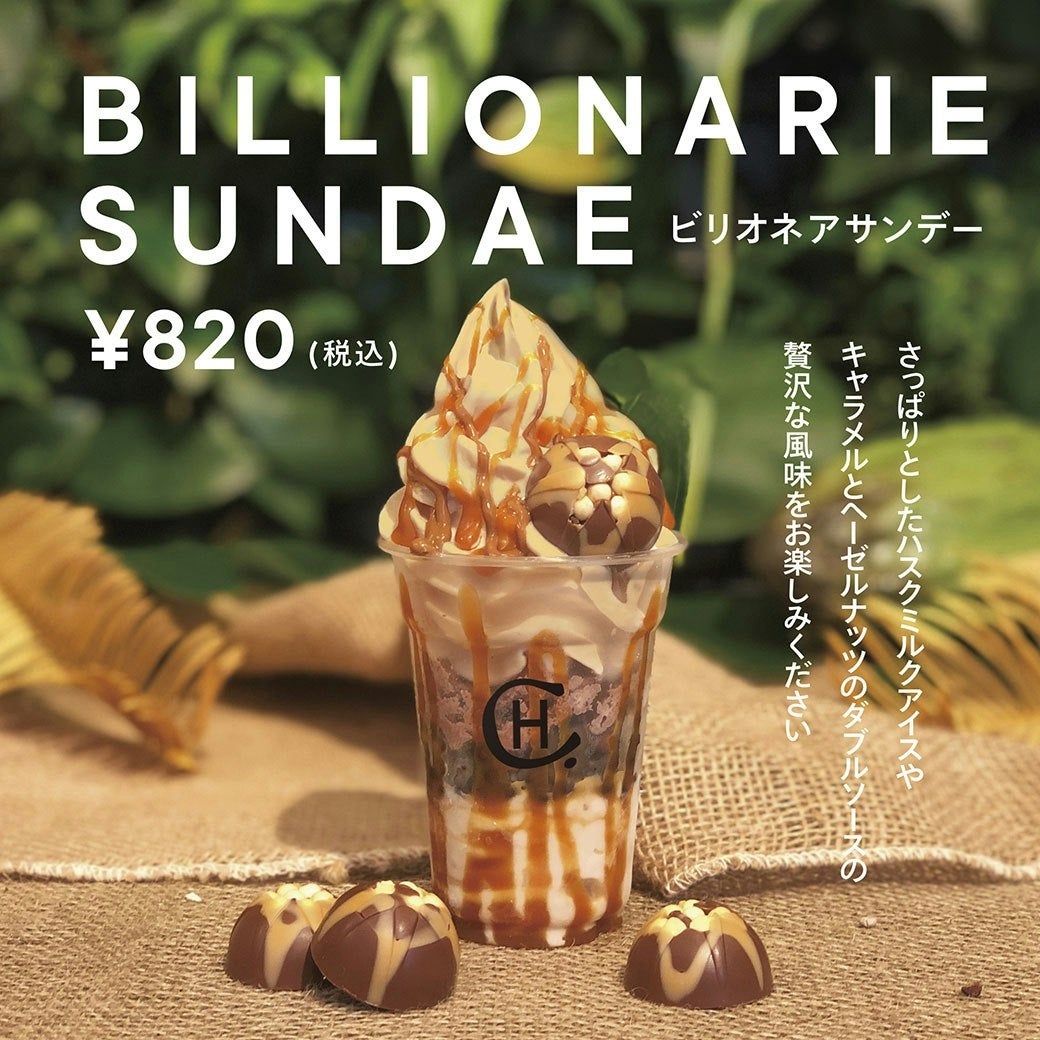 株式会社 HC Saint Lucia (東京都中央区: 代表取締役 /永砂智史)は、ホテルショコラ店舗(一部店舗を除く)にて、2024年11月13日(水)より、復刻版「ビリオネアサンデー」を数量限定で販売いたします。さっぱりとしたハスクミルクアイスにキャラメル、ヘーゼルナッツソースのダブルソースを使用した贅沢でクリーミーな食感とリッチな風味が味わえる一品として、お客様からたくさんのお声をいただき、復刻版として登場します。