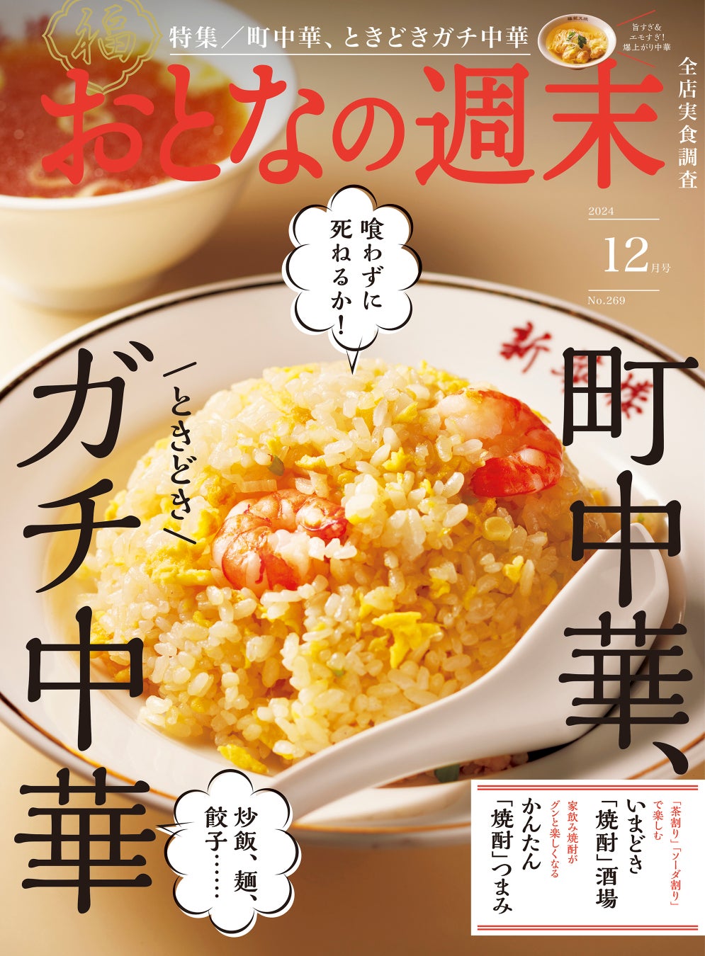 今号は「町中華&ガチ中華」を大特集。おいしくて満腹になれる優良店を多数紹介します! ほか、茶割りとソーダ割りで楽しむ「いまどき 焼酎酒場」、割りもの焼酎と合わせたい「秋の家つまみ」特集もあります。