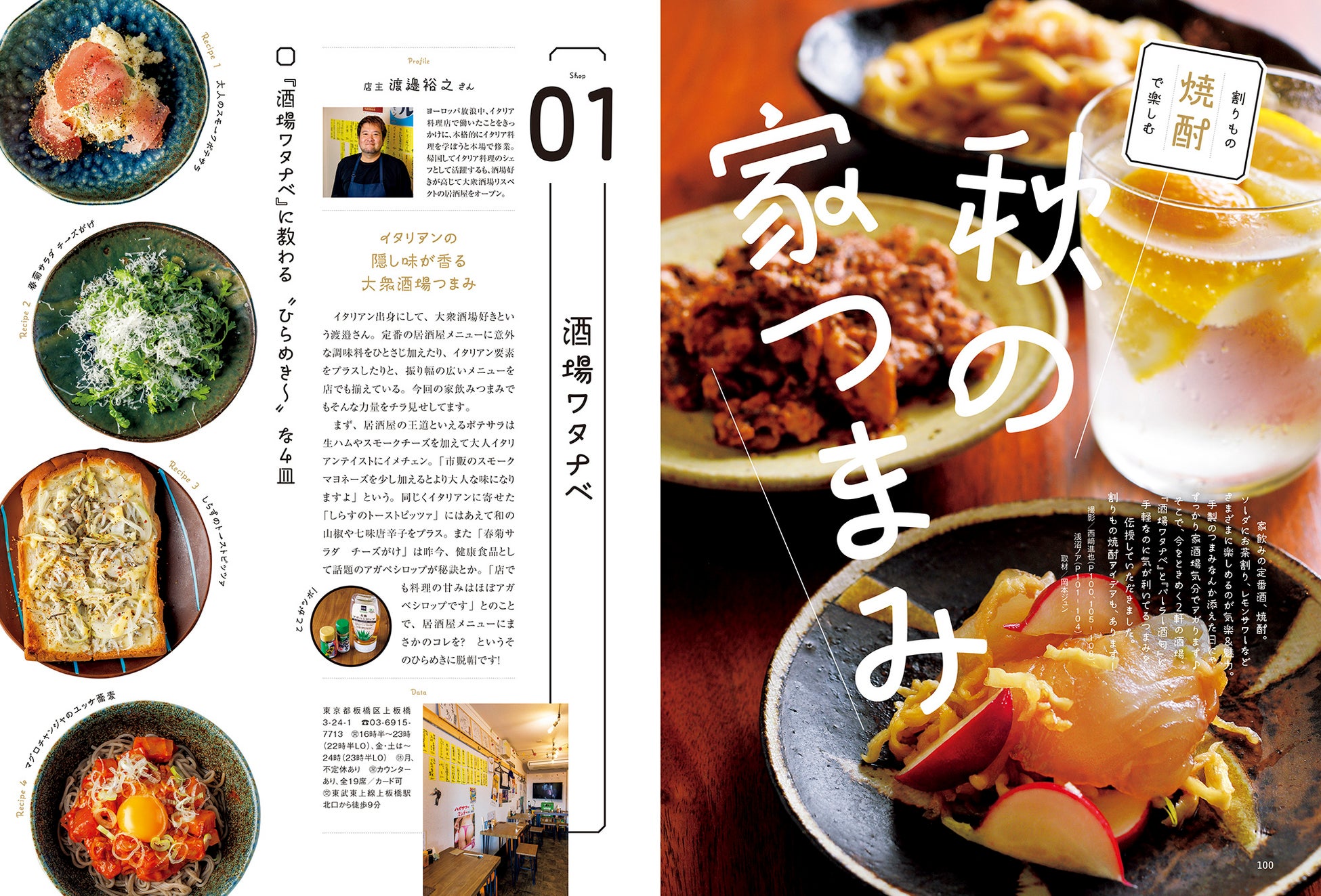 家飲みの定番酒、焼酎。ソーダにお茶割り、レモンサワーなどさまざまに楽しめるのが気楽&魅力。手製のつまみなんか添えた日にゃすっかり家酒場気分でアガります♪ そこで、今をときめく2軒の酒場、『酒場ワタナベ』と『パーラー酒匂』に手軽なのに気が利いてるつまみを伝授していただきました。割りもの焼酎アイデアも、あります!