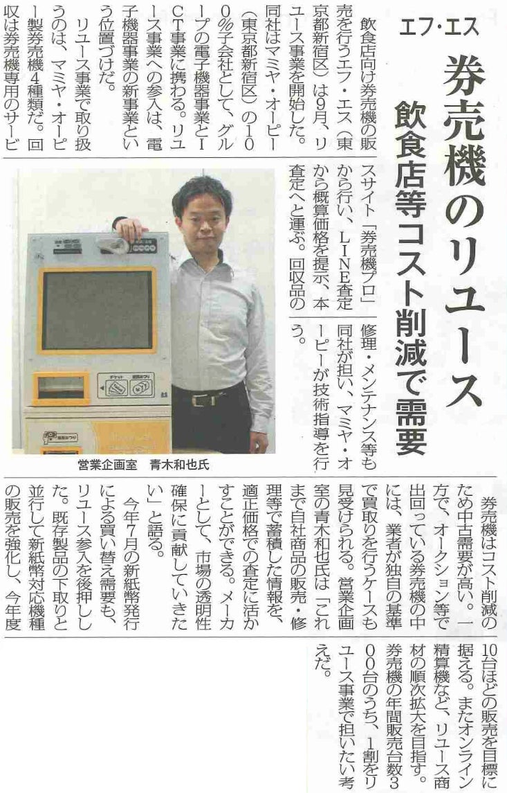 会社名 エフ・エス株式会社 (マミヤ・オーピー株式会社の100パーセント子会社)