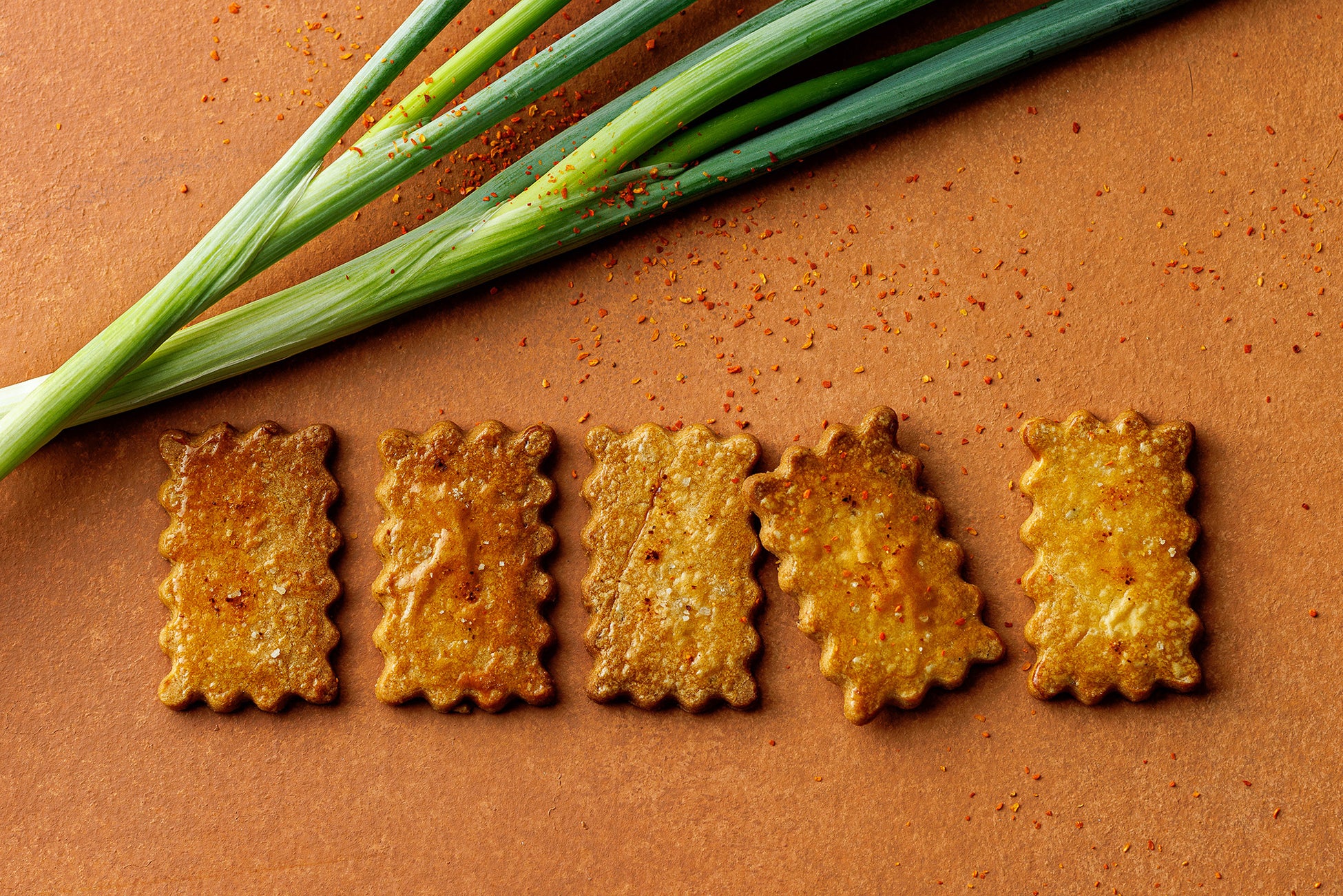 京都で店を構えるにあたり京都産の食材を取り入れた焼き菓子を作りました。京野菜の九条ねぎと相性のよい西京味噌を生地に加え、ねぎの香ばしさと西京味噌のコク、ほどよい塩気を閉じ込めました。七味がピリリと香り、余韻まで京都の味をご堪能いただけます。