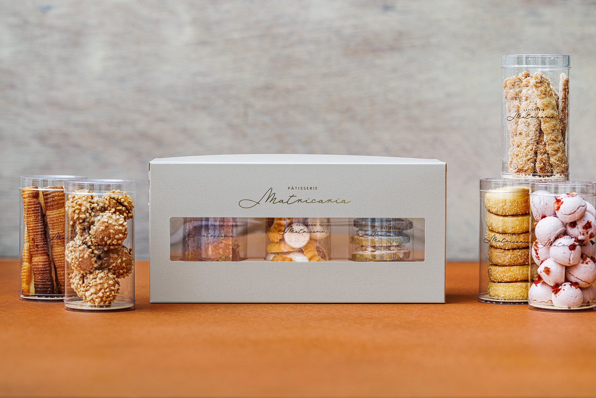 「Matricaria」のお菓子は、さくさく、ふわっ、ほろほろ、しっとり、ざくざくなど、食感の豊かさが特長です。それぞれの素材の風味を生かしながら、配合を調整することで商品ごとに違う食感を生み出しています。店内には最大24種のラインナップ*を取り揃え、商品を選ぶ楽しさをご提供いたします。根源にあるのは、お菓子を中心に広がる“人の輪”を作りたいという思い。思わず足を運びたくなり、お菓子を選ぶときに幸せを感じられるような“場所”になるよう、日々お菓子を作り続けます。*日によって品揃えが変わります。