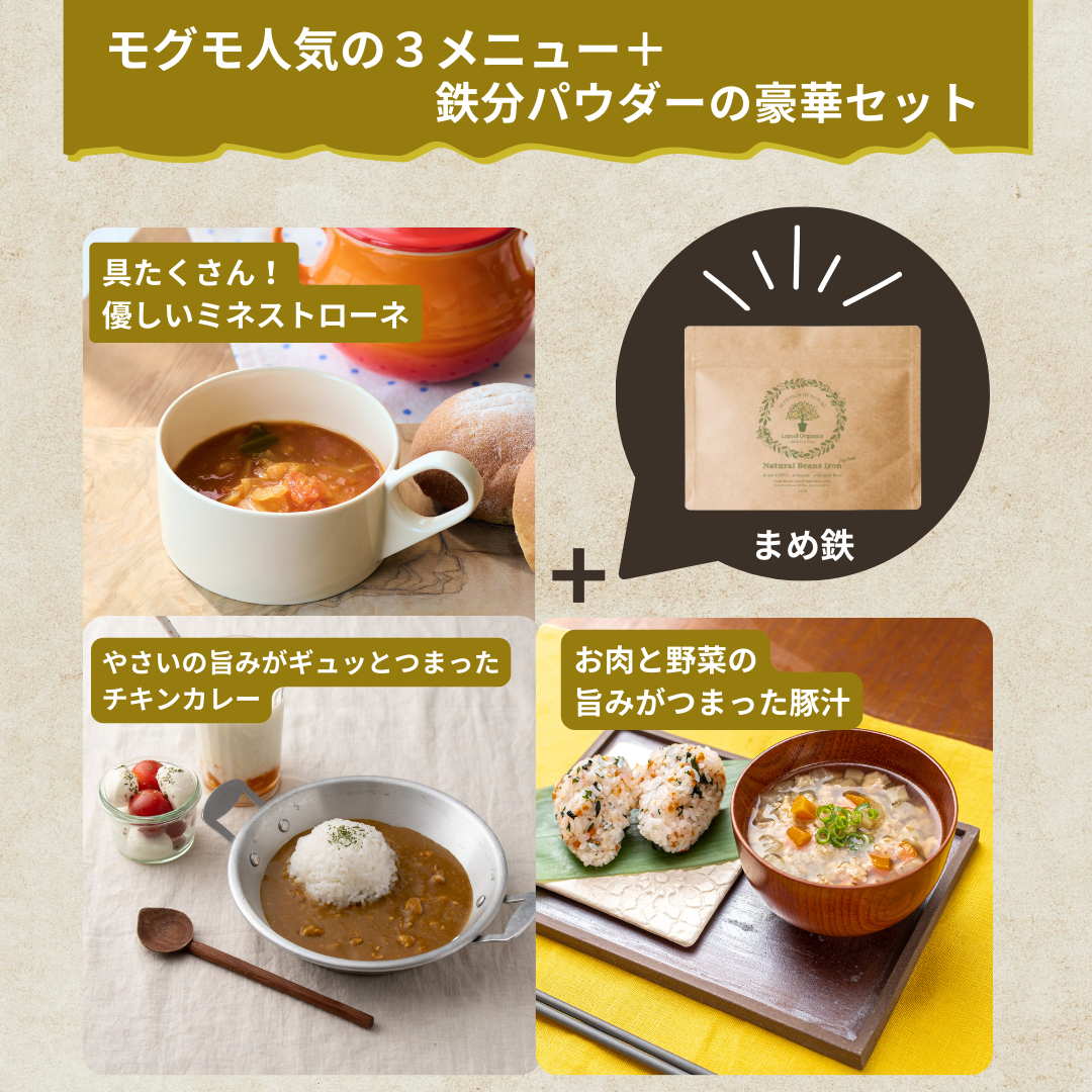 mogumoでは管理栄養士監修のもと、幼児期に必要な栄養バランスが取れたメニューを全国から厳選した工場で全て手作り生産しています。