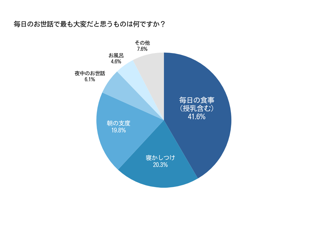 数ある育児の中でも「食事の世話」を負担に感じている方が半数近くを占めていることがわかりました。