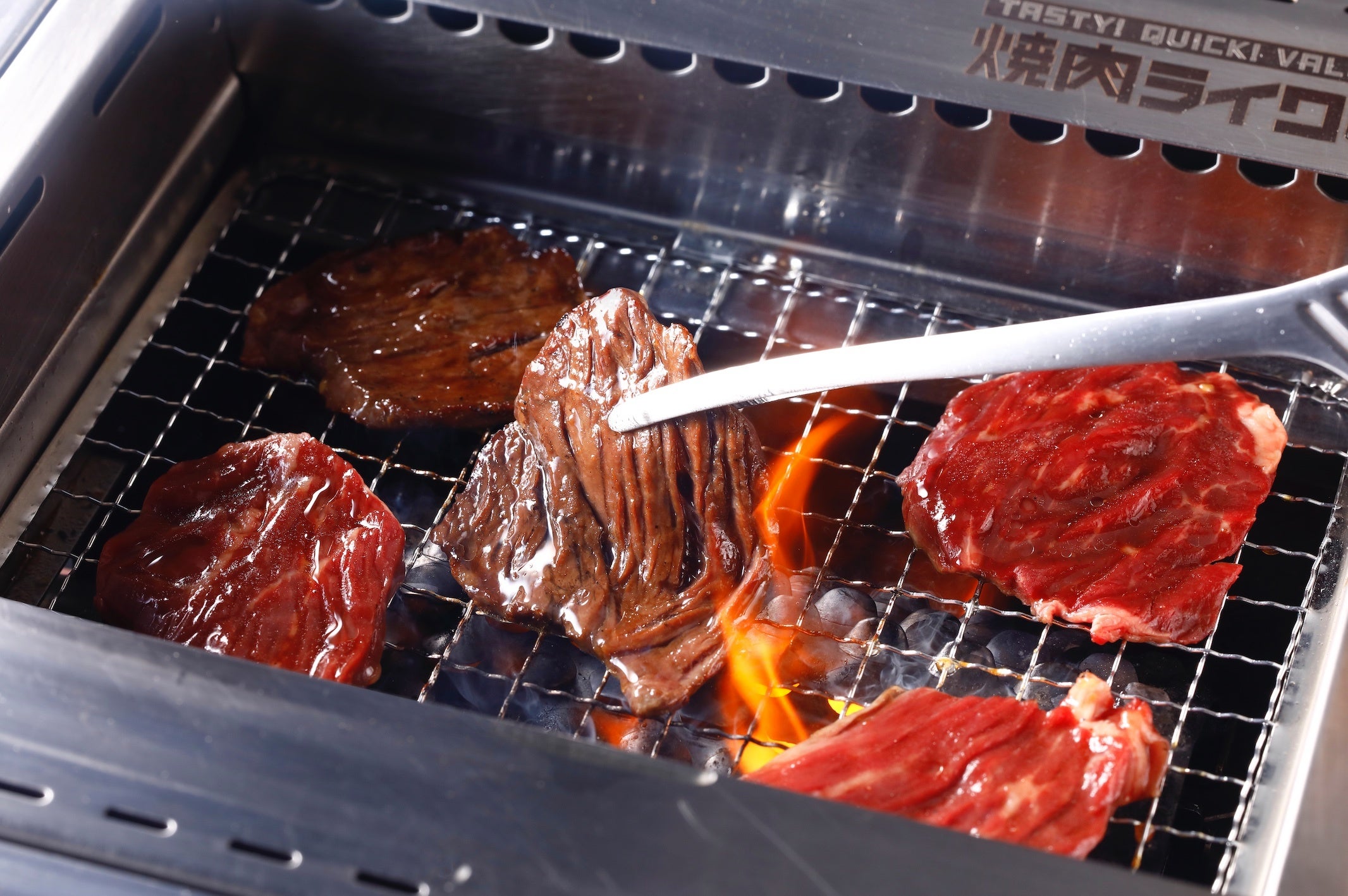 ”1人1台の無煙ロースター”を導入し、お客様のペースに合わせて好きな部位を好きなだけ自由に楽しむことができる焼肉ファストフード店です。「1人でも色々な部位を注文できる」、「女性1人でもお店に入りやすい」、「提供3分以内だから時間に余裕がなくても行ける」「1,000円で焼肉が食べられる」といった焼肉の常識を覆す、まったく新しい焼肉の楽しみ方を提供しています。注文はタッチパネル、卓上にはセルフのウォーターサーバーを設置、お会計もセルフレジで全て自分のペースで焼肉を気軽に楽しめます。また、無煙ロースターの為、換気能力も高く、臭いを気にすることなくご利用できます。(※店舗によって形態は異なります)