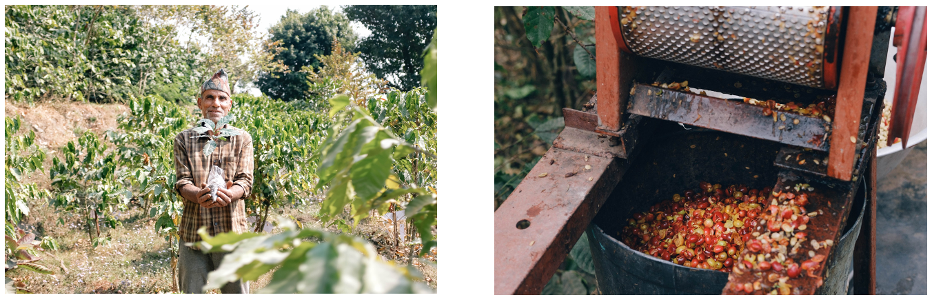 BIKAS COFFEEは2021年から、ネパール・ハルパン村のコーヒー農園に自分のコーヒーの木を植えて、3年後に収穫したコーヒーが届く「コーヒー植樹プロジェクト」を通して、過去4年間で合計470本の木を植樹し収穫まで行っています。