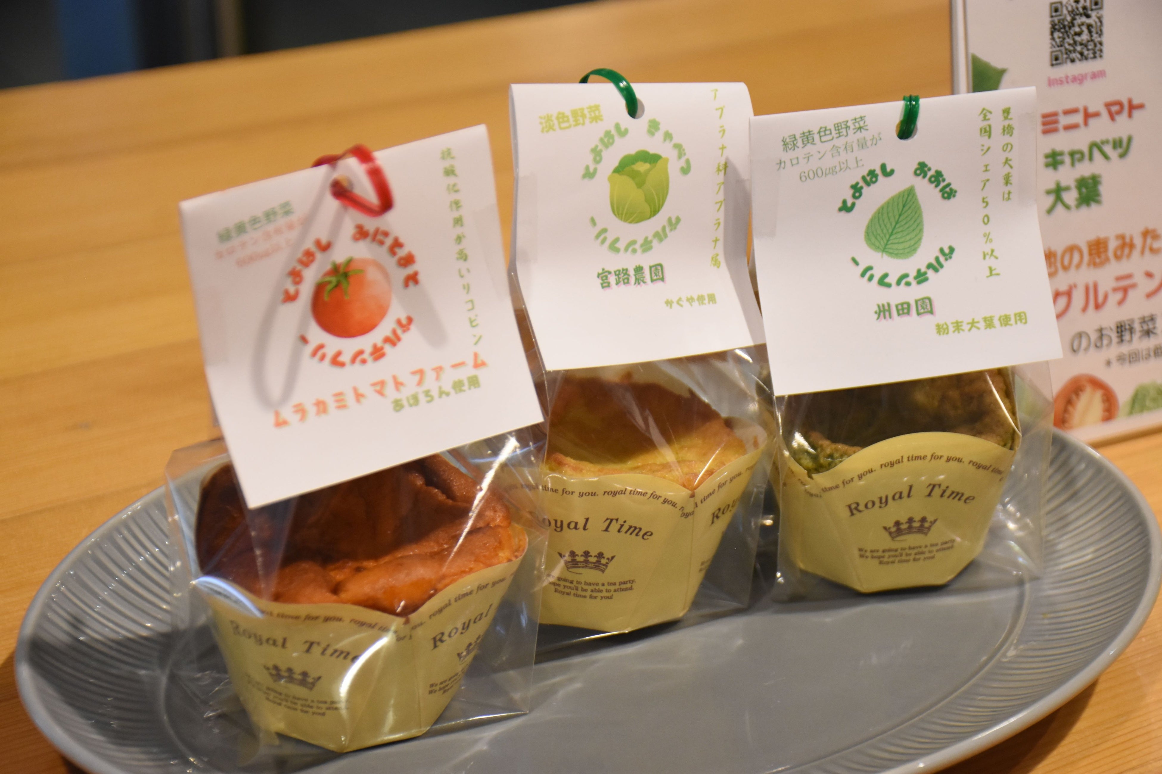野菜をグルテンフリーのスイーツに仕上げたのは「ローカーボカフェ向日葵」(西高師町)。管理栄養士が手掛ける低糖質でグルテンフリーのスイーツが売りの同店らしく、「野菜が持つ力と美味しさを最大限に引き出す」ことにこだわり、それぞれの野菜が持つ力をオンライン上でも情報発信していきます。