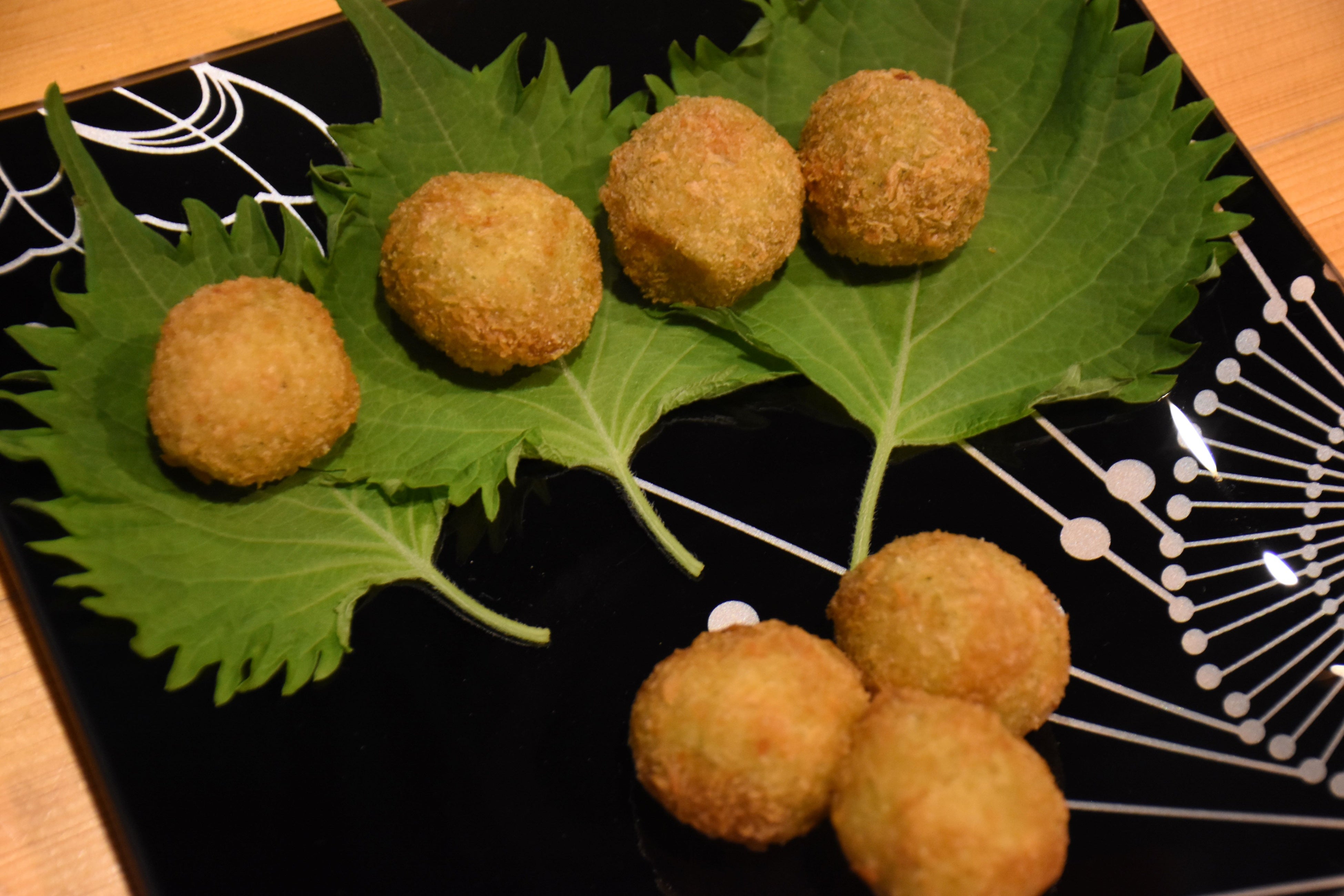 トップバッターは初参加で、ウズラ卵の加工などを行う「天狗缶詰」。有限会社州田園の大葉の粉末を入れた衣をまとわせて、ウズラ卵のフライを作りました。来年1月から、emCAMPUS FOODなどで販売予定です。