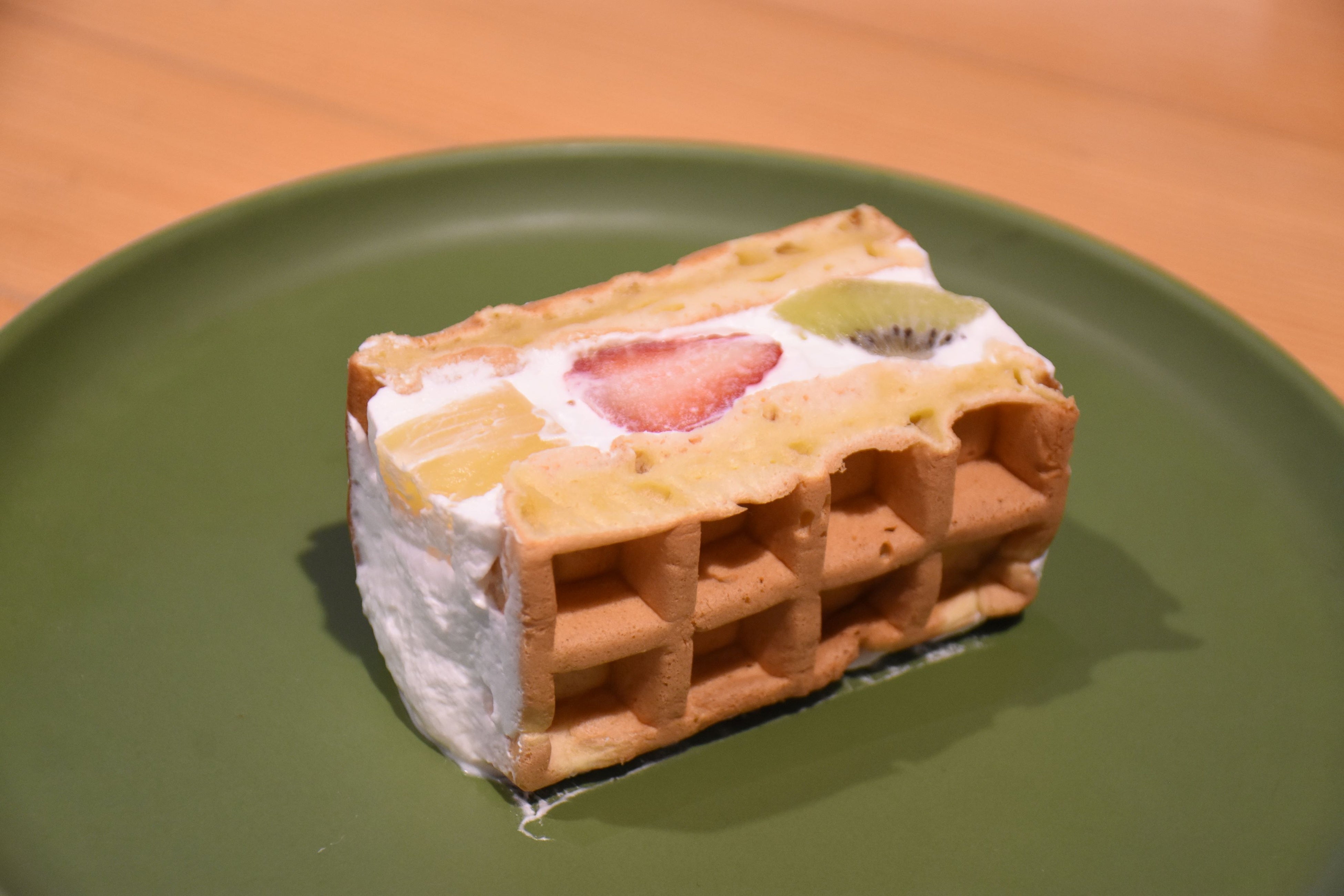 ふわっふわ食感“とよはしこめこ”のワッフルパフ・フルーツ(1ピース550円)