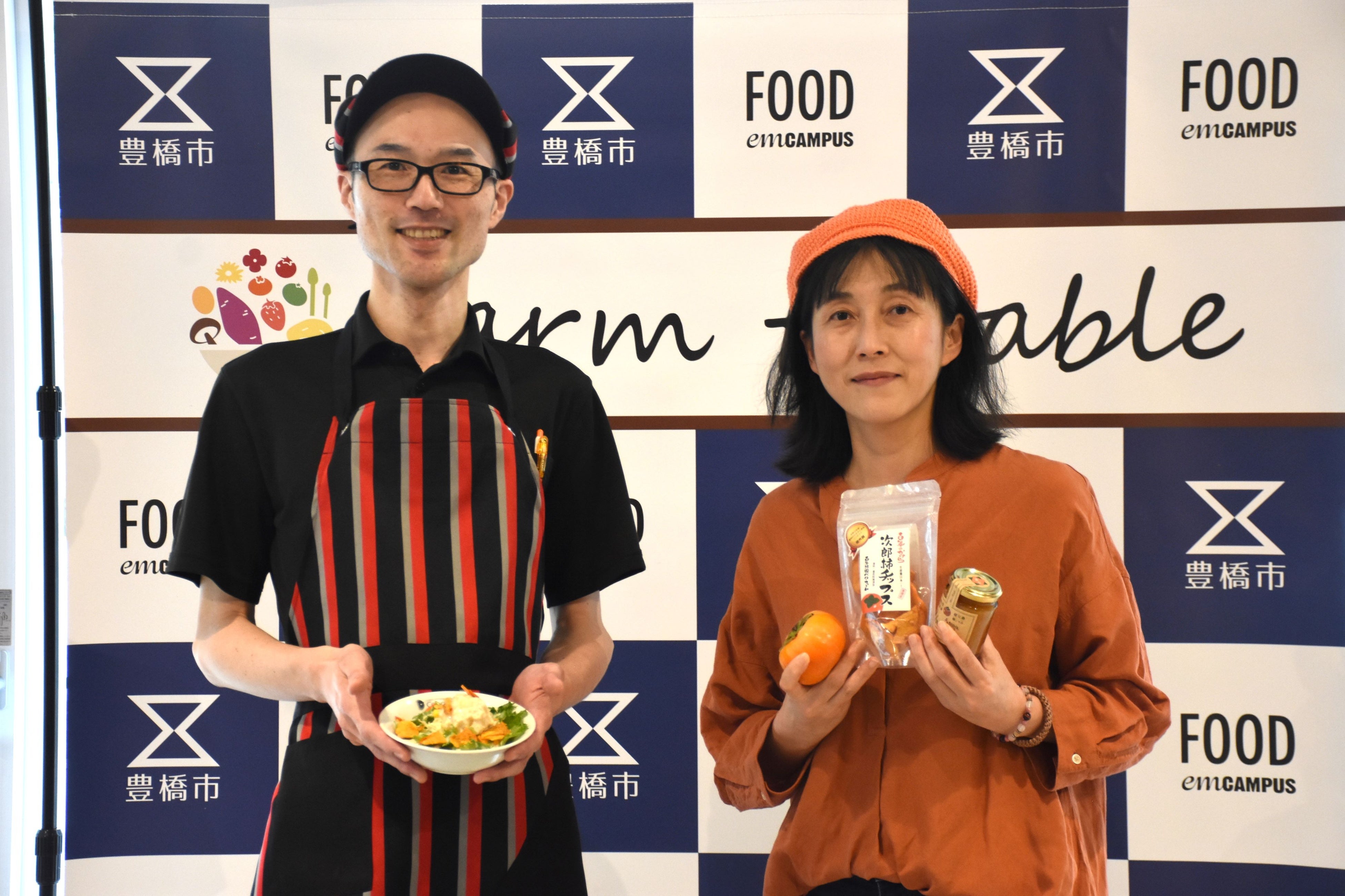 カボチャを提供した豊橋市住みます芸人のASANA(アサナ)による「ASANAふぁーむ」は、「僕らのカボチャに魔法をかけてくださって、シンデレラの気分です。大変『クボーノ』になっていると思いますので、ぜひ食べてください」。苺屋田中は、「これからクリスマスやバレンタインなど、生のイチゴを食べる季節になってくるが、デザートサラミはまた違った味わいで、とても面白い体験だと思います。ぜひ皆さんご賞味ください」。兵藤農園は「シイタケが苦手な方でも、すごくおいしく食べられるように作っていただいた。皆さんにどんどん食べてほしい」と呼びかけました。