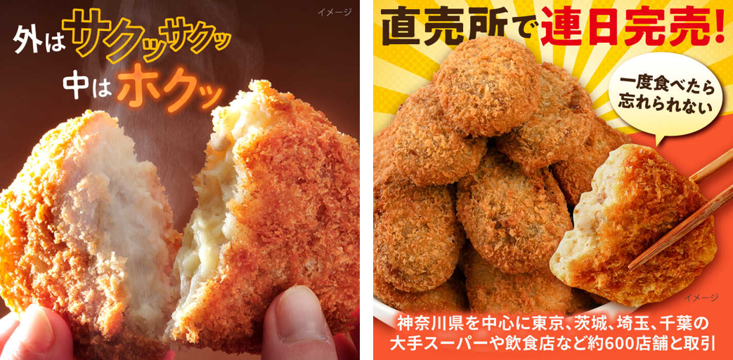 1973年創業で、50年以上にわたって業務用コロッケ・メンチを中心とした惣菜の製造を行っている会社です。神奈川、東京、関東圏を中心としたスーパーなど多くのお店と取引実績があり、その美味しさは折紙付きです。