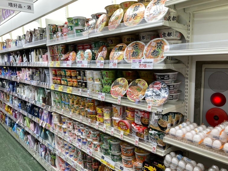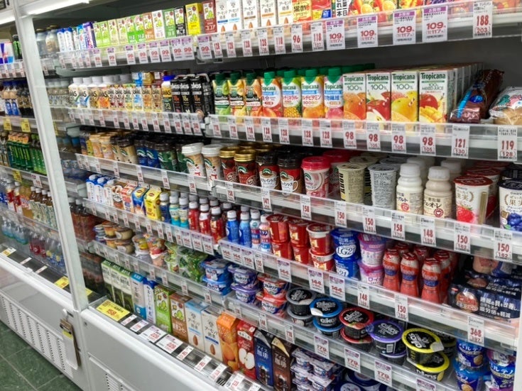 食品の取扱いを強化し、カップ麺・冷凍食品・お菓子やアイスだけでなく、牛乳や納豆などの日配品も取り揃えています。