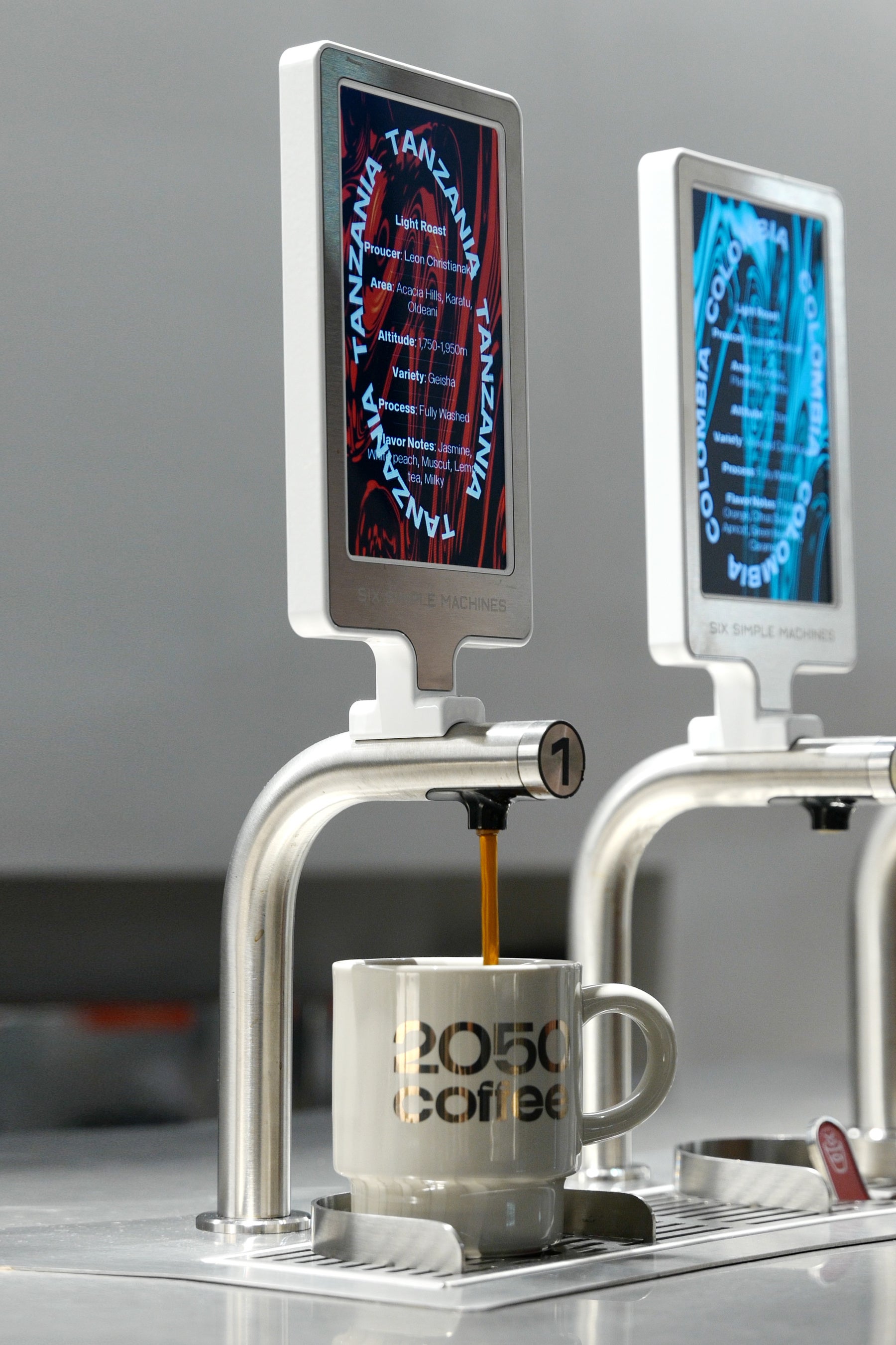 近未来的な空間や「10秒で一杯」注げるタップコーヒーを通して、スペシャルティコーヒーを手軽に楽しめる体験を提供し、コーヒーのサステナブルな消費を促しています。店名の由来にもなっている「コーヒーの2050年問題」に対して、高品質なコーヒー豆をサステナブルな農法で生産している世界中の農家との関係性を構築し、質の高い農家の拡大、コーヒー豆生産量の増加を目指しています。