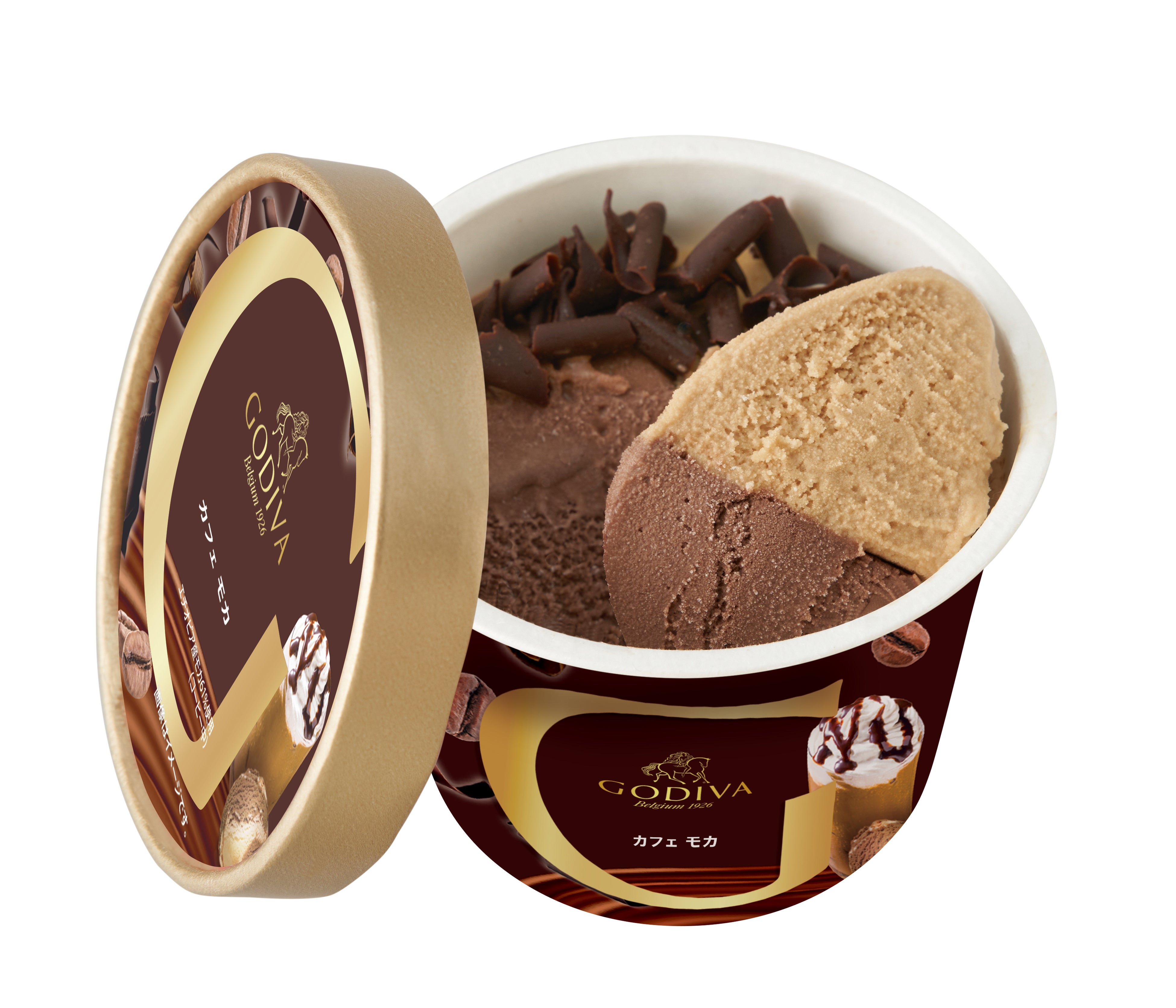 エチオピア産モカを使用したコクの深いコーヒーアイスクリームと、厳選したクーベルチュールを使用したゴディバのダークチョコレートアイスクリームがマリアージュしました。