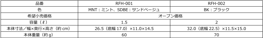 『保冷ランチケース(RFH-001/002)』 仕様一覧