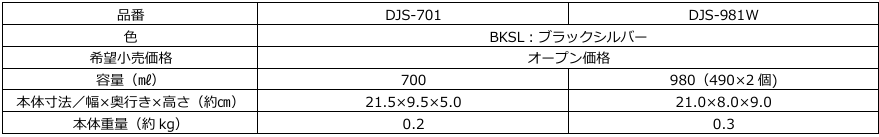 『フレッシュランチボックス(DJS-701/981W)』 仕様一覧