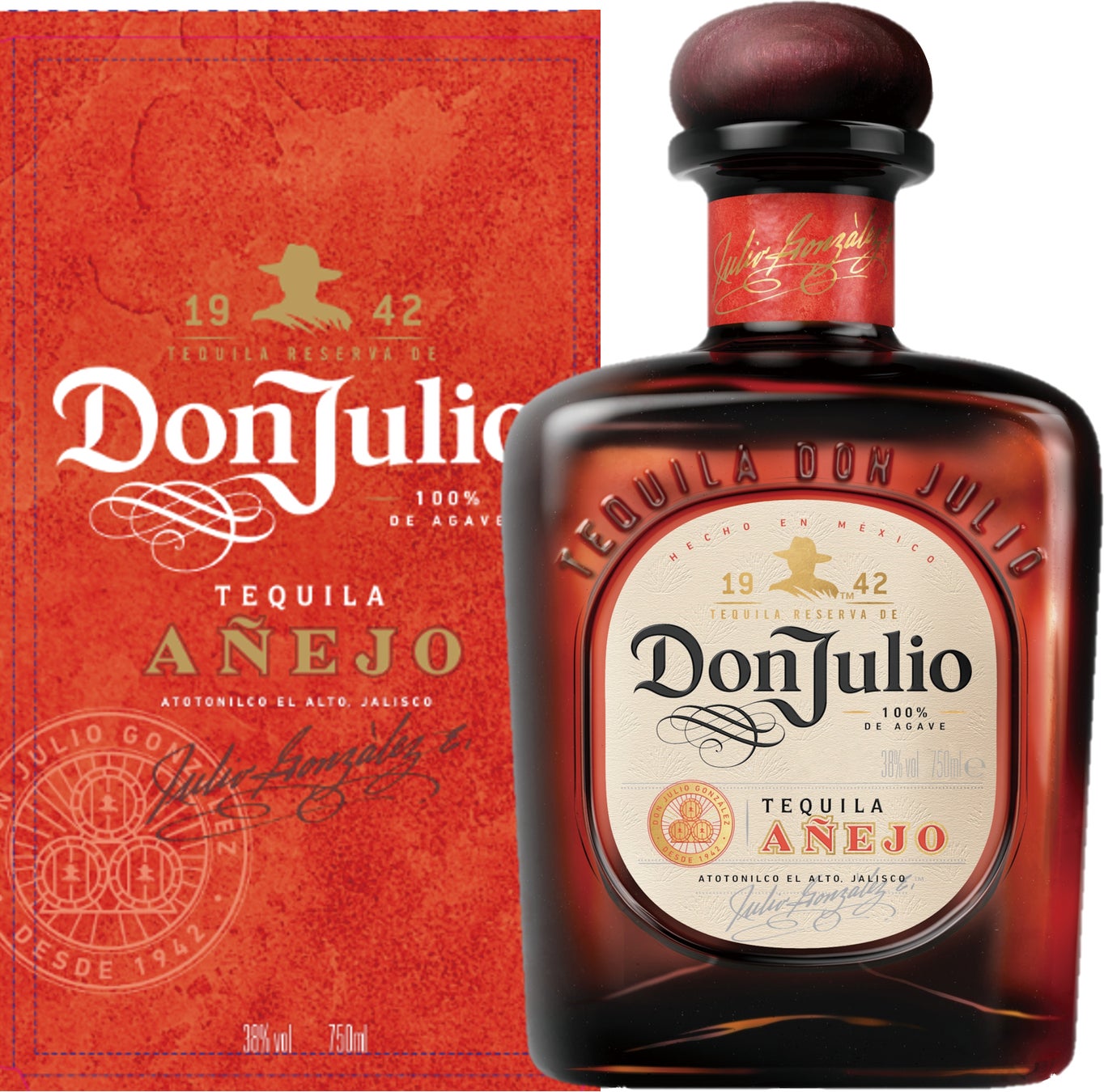 「ドン・フリオ」は、テキーラ界の真のレジェンド、ドン・フリオ・ゴンザレスが“最高品質のテキーラ”を追い求め完成させた、メキシコ生まれのスーパープレミアムテキーラです。格別な「まろやかさ」を生み出すために、手作業によるアガベ栽培から最終的な樽での熟成にいたるまで、全工程のひとつひとつに入念な注意が払われています。2002年に発売されたラグジュアリーテキーラ、「ドン・フリオ 1942」が評価されたことを筆頭に、今では世界No.1*テキーラの地位を確立しています。