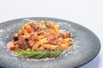 阿智村産トマトをふんだんに使ったソースに紅ズワイが入った贅沢な一品。