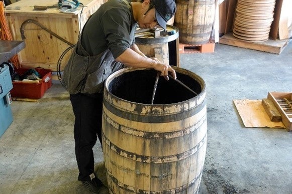 三郎丸蒸留所は、本年11月より新事業である「Re:COOPERAGE(リク―パレッジ)」を立ち上げました。これは、ここ10年間で約10倍に増えた蒸留所数に対し、樽の価格の高騰、樽不足により、樽の供給が追いついていないという現状に対応することを目的としています。また、それらの樽をメンテナンスする職人の不足も課題となっています。今回、三郎丸蒸留所が立ち上げる新規事業Re:COOPERAGEは、樽の「修理・再生・再活性化」を担う業態です。現在、独立系の樽メーカーは日本全国でも1社のみであり、「Re:COOPERAGE」の立ち上げにより、日本のほぼ中央に位置する富山県で、今後、樽の修理が可能となります。三郎丸蒸留所は、「樽再生と木桶の再生」両方を専門として担う日本初の本取り組みで、業界の底上げに貢献します。