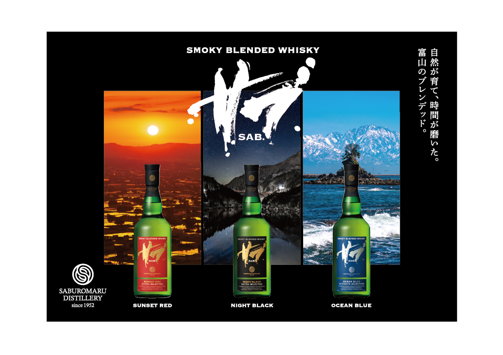 三郎丸蒸留所では、2019年のシングルモルト三郎丸シリーズ第一弾「三郎丸0 THE FOOL」の発売以来、日本国内やアジア市場を中心に、ウイスキーファンの方々にご好評をいただいています。日本のシングルモルトウイスキーは他蒸留所も合わせて、世界でも注目度が高まっているものの、ウイスキー消費量の大半をブレンデッドウイスキーが占めます。三郎丸は、そうした背景を受け、グローバルにたたかえるブレンデッドウイスキーに挑戦します。これまでの商品ブランドを整理し、新・三郎丸ブランドポートフォリオの新たな柱の1つとして、ブレンデッドウイスキー「SAB.」を発売します。第一弾として「SAB. SUNSET RED」と「SAB. NIGHT BLACK」の2種が12月12日(木)にデビュー。来年2025年夏に「SAB. OCEAN BLUE」を数量限定品として発売予定です。三郎丸の大きな特徴である、「スモーキーさ」を追求しながら、グローバルに浸透するネーミング、パッケージ、プライシングと、グローバルに対応するウイスキーブランドの確立を目指します。(新製品3品の商品概要は本紙末尾参照)