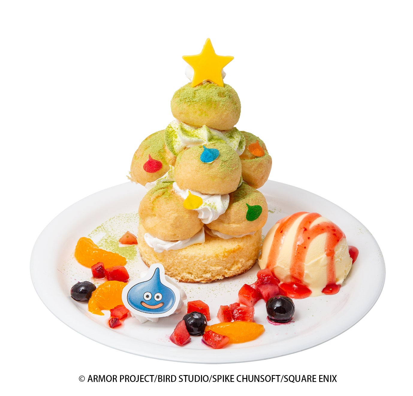 カラフルなスライムの食用シートをトッピングした可愛いツリー型スイーツ。