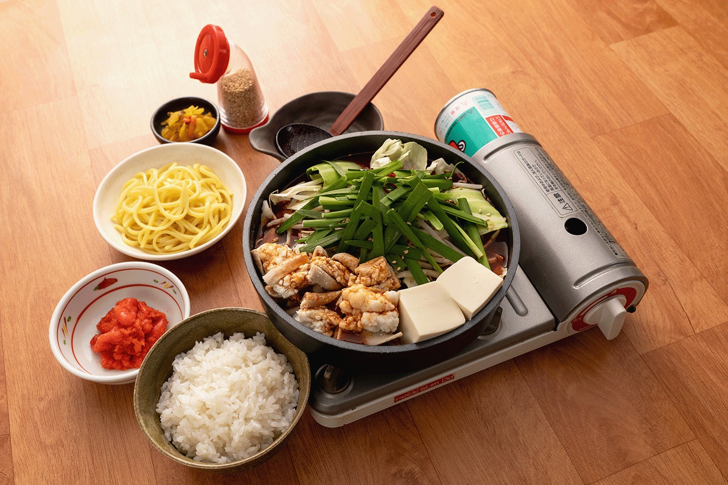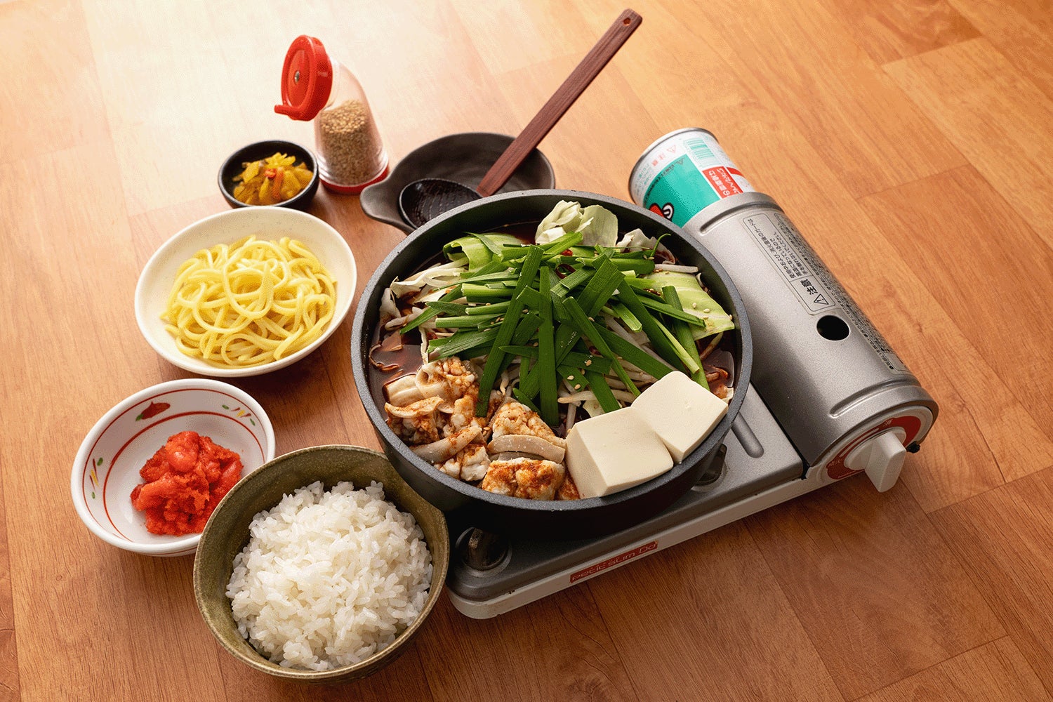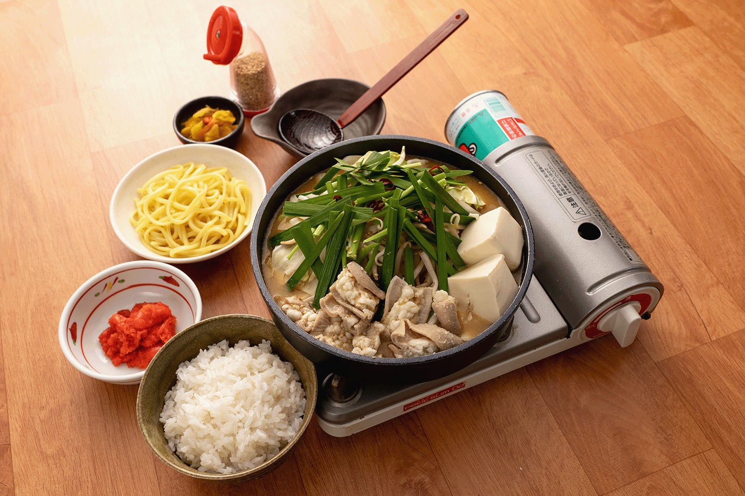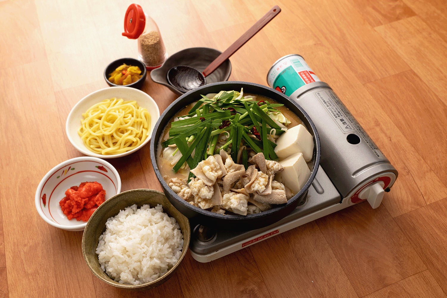 牛もつの脂と野菜の甘味がとけ込む牛もつ鍋。牛もつ倍盛りは旨味も倍増し、鍋を煮立てていくうちに具材からとけだす素材の旨味は、心にも体にもしみわたります。〆のラーメンもセットになっており、具材の旨味が凝縮されたスープに絡めてお召し上がりいただけます。