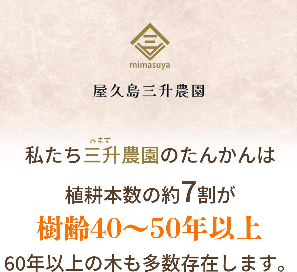 先人から受け継いだ、想いが詰まった三升農園のたんかんの木が、何十年先も元気に果実を実らせ、屋久島の恵みを分け与えてくれます。季節が巡るたびに、生産者にもお客様にも生きることの楽しみを感じさせてくれます。