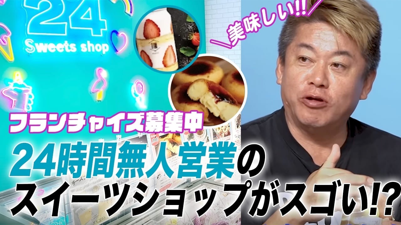 SUPER STATE HOLDINGS株式会社(本社:東京都渋谷区、代表取締役:柏原 真人、以下「SUPER STATE HOLDINGS」)のグループ傘下で無人スイーツ販売店舗「24スイーツショップ」のフランチャイズ事業を行うトゥエンティフォー株式会社(本社:広島県広島市、代表取締役:久保田 翔也、以下「トゥエンティフォー」)は、堀江貴文氏のYouTubeチャンネル「ホリエモンチャンネル」とタイアップし、同チャンネルにて動画コンテンツが公開されたことをお知らせいたします。