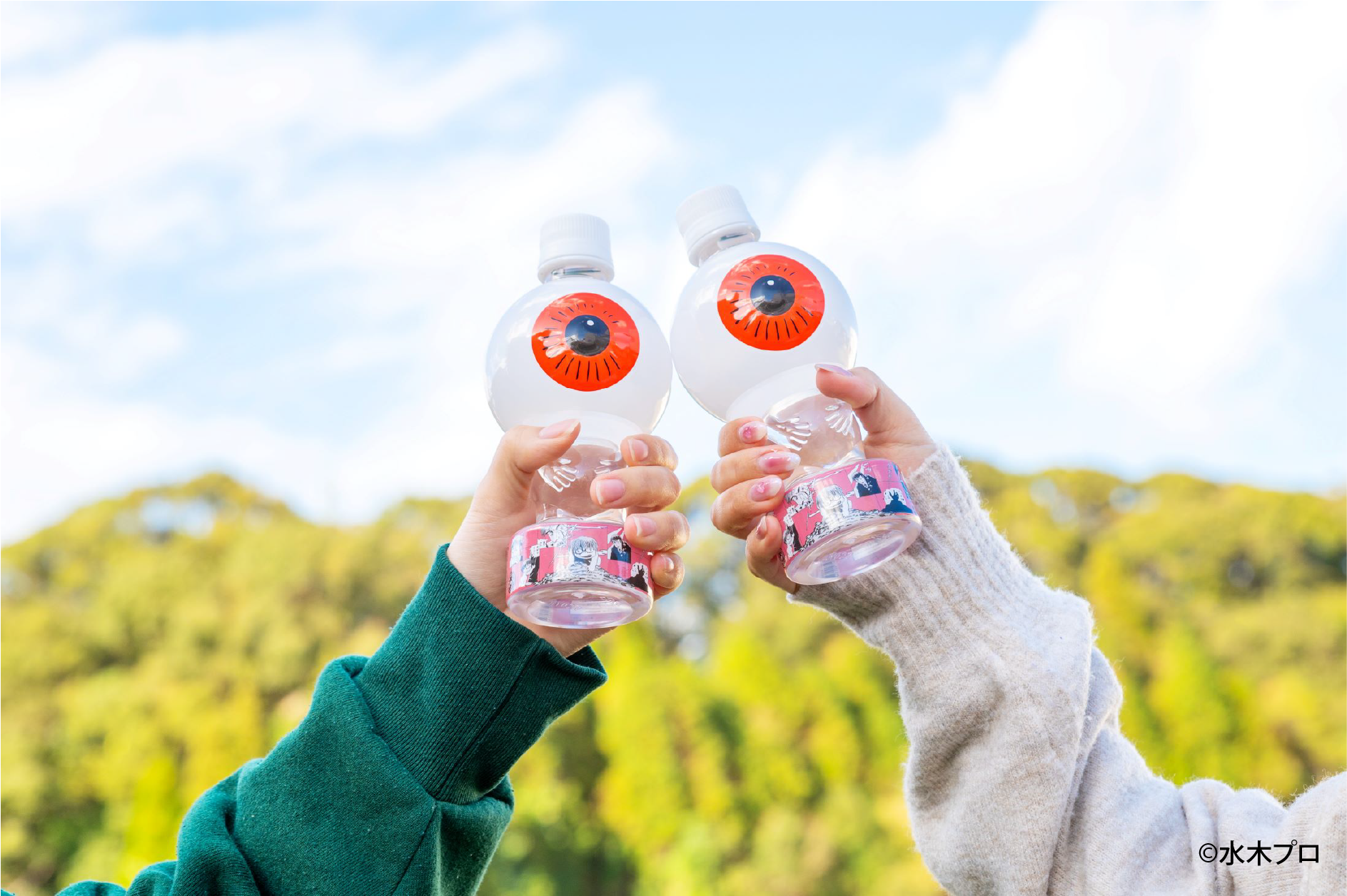 可愛い目玉おやじをかたどった、天然水が入ったペットボトル。ラベルをはがしても目玉おやじなので、飲んだ後も置物として手元に置いておきたくなるデザインです。