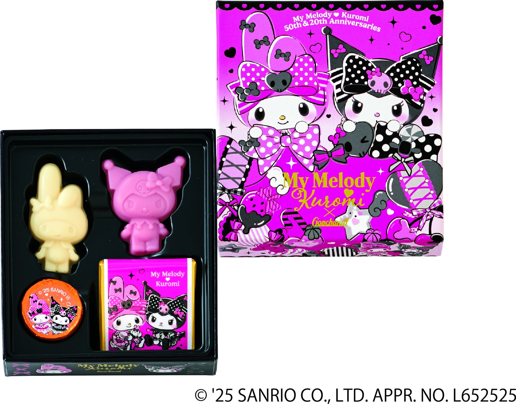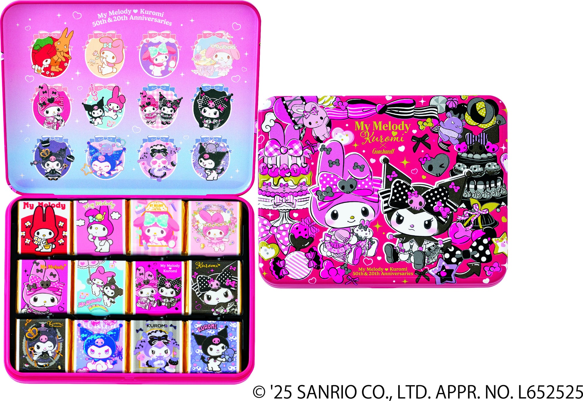 2025年はサンリオの人気キャラクター、マイメロディが50周年、クロミが20周年を迎えた特別な年です。「マイメロディ・クロミ周年限定デザイン」のパッケージでお届けするチョコレートは一粒一粒までかわいらしく、心ときめく詰合せです。