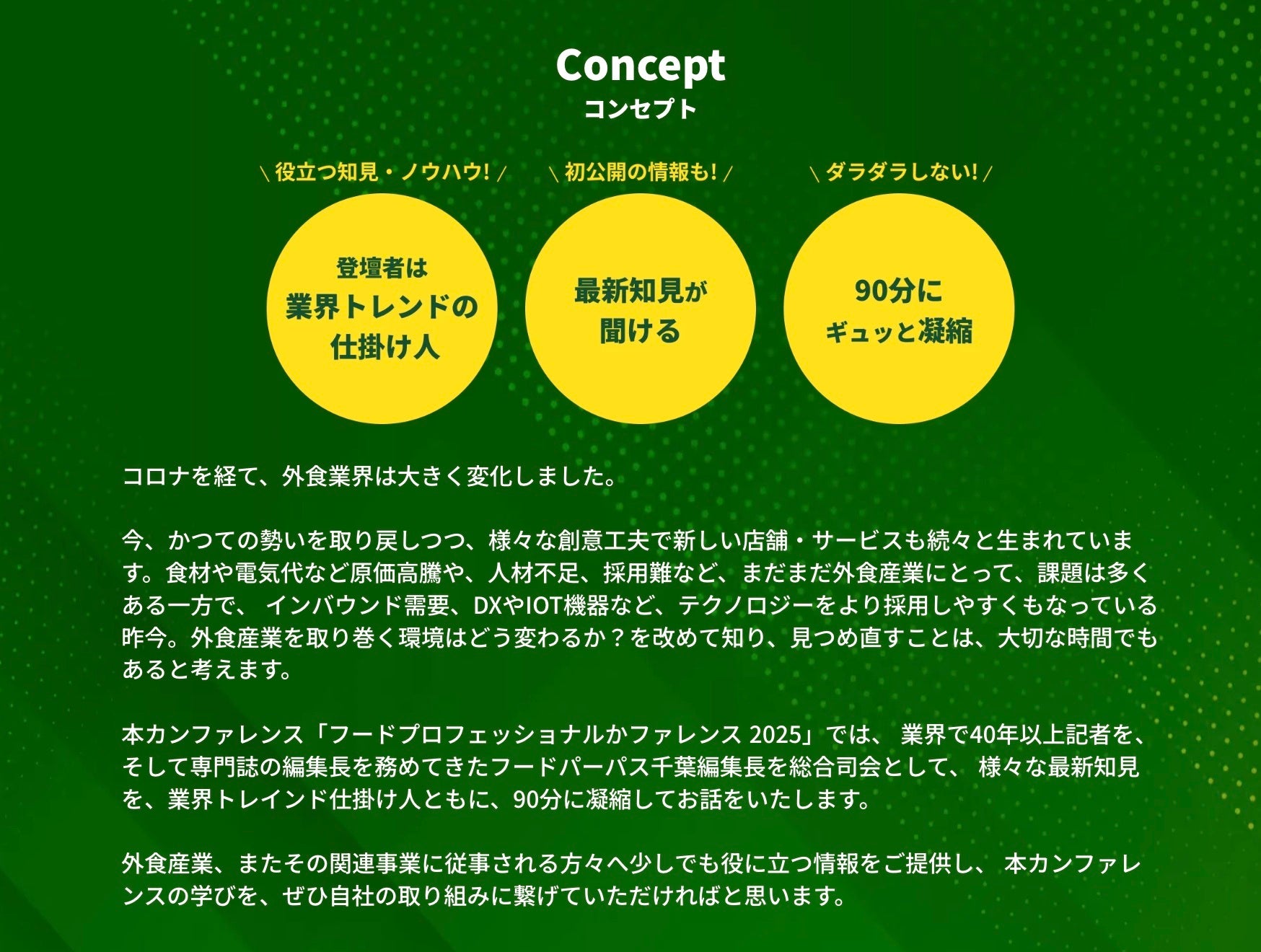 外食産業のこれからを学ぶ90分「フードプロフェッショナルカンファレンス2025」を開催、参加は無料