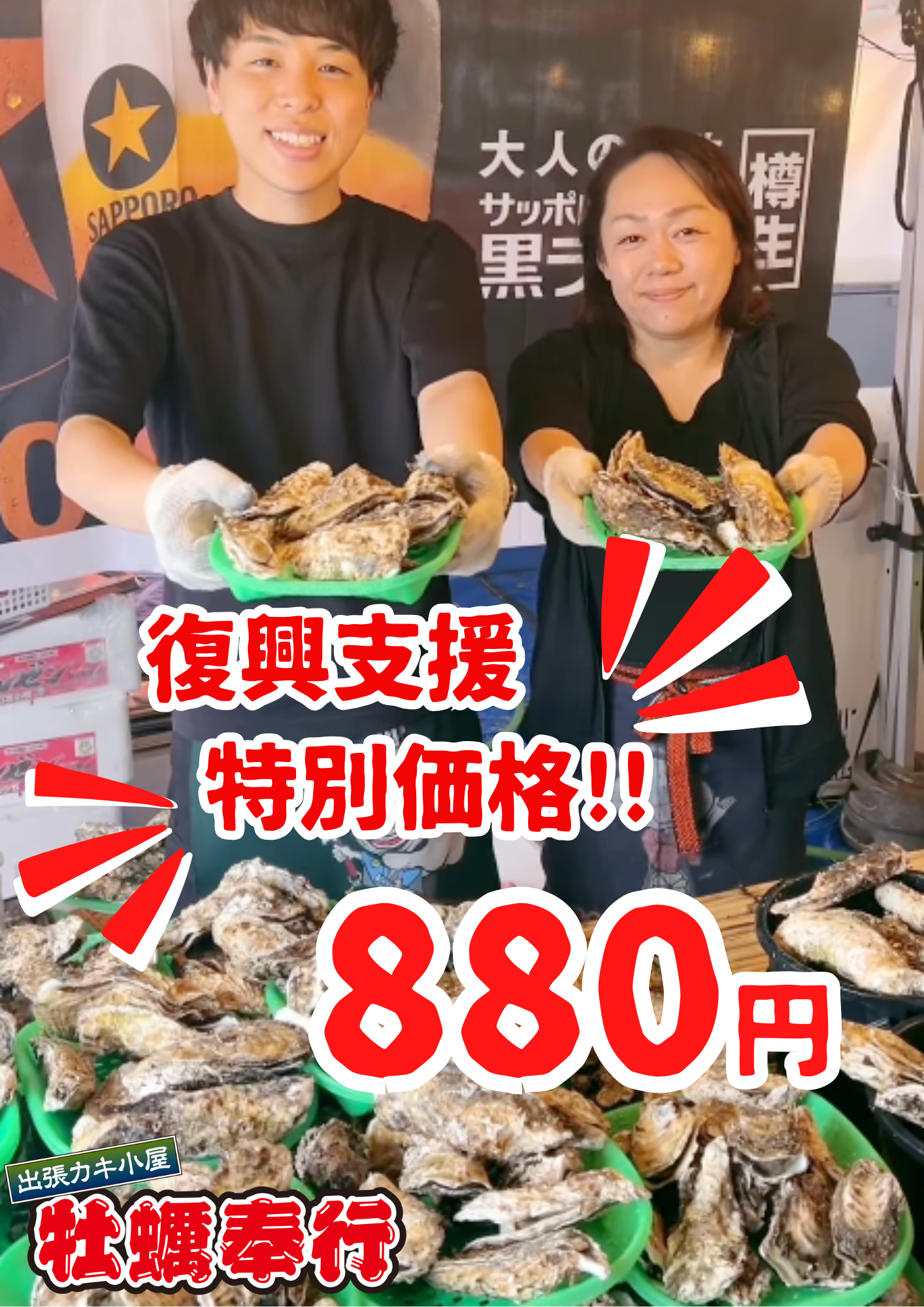 ▶︎東日本大震災で販路に苦しむ東北の牡蠣を多くの人に食べてほしいとの思いで、冬季限定の東北復興支援イベントとして全国各地で展開。