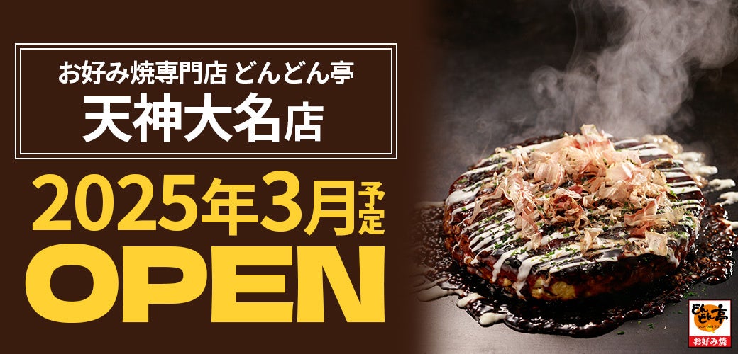 お好み焼き専門店 どんどん亭(本社:Miコーポレーション株式会社/福岡市博多区)は、2025年3月に『どんどん亭天神大名店』をオープン予定です。