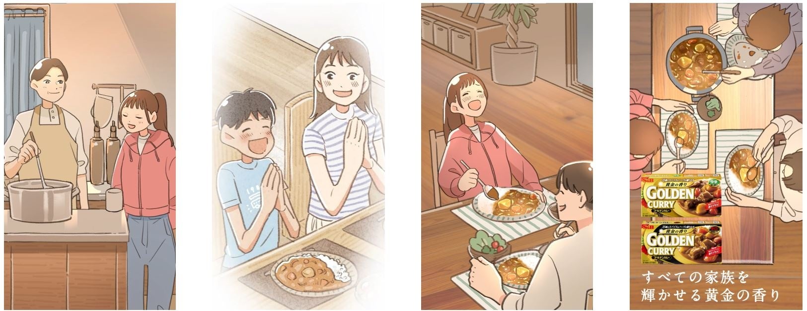 CM「中辛・辛口編」を、フーカ・コバヤシ氏作画の色鮮やかなアニメーションにすることで、料理や情景を特徴的に表現し、 ゴールデンカレーの魅力をより幅広い層のお客さまへお伝えします。