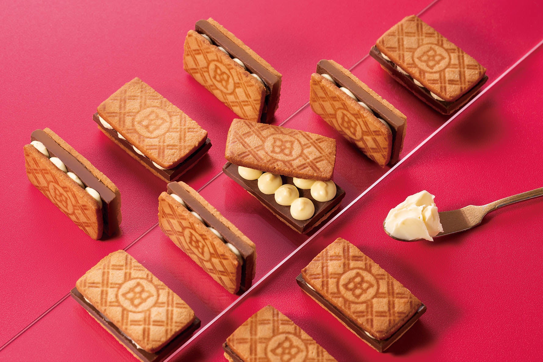 ふっくらしぼったバターホイップショコラに、アーモンドペーストを練り込んだ厚切りプラリネショコラ。バレンタインシーズンにふさわしく、サクサクのバターサブレでボリュームいっぱいにサンドしました。バタースイーツ専門店ならではの発想で生まれた、とろけあうバターとショコラの美味しさをたっぷりお楽しみください。