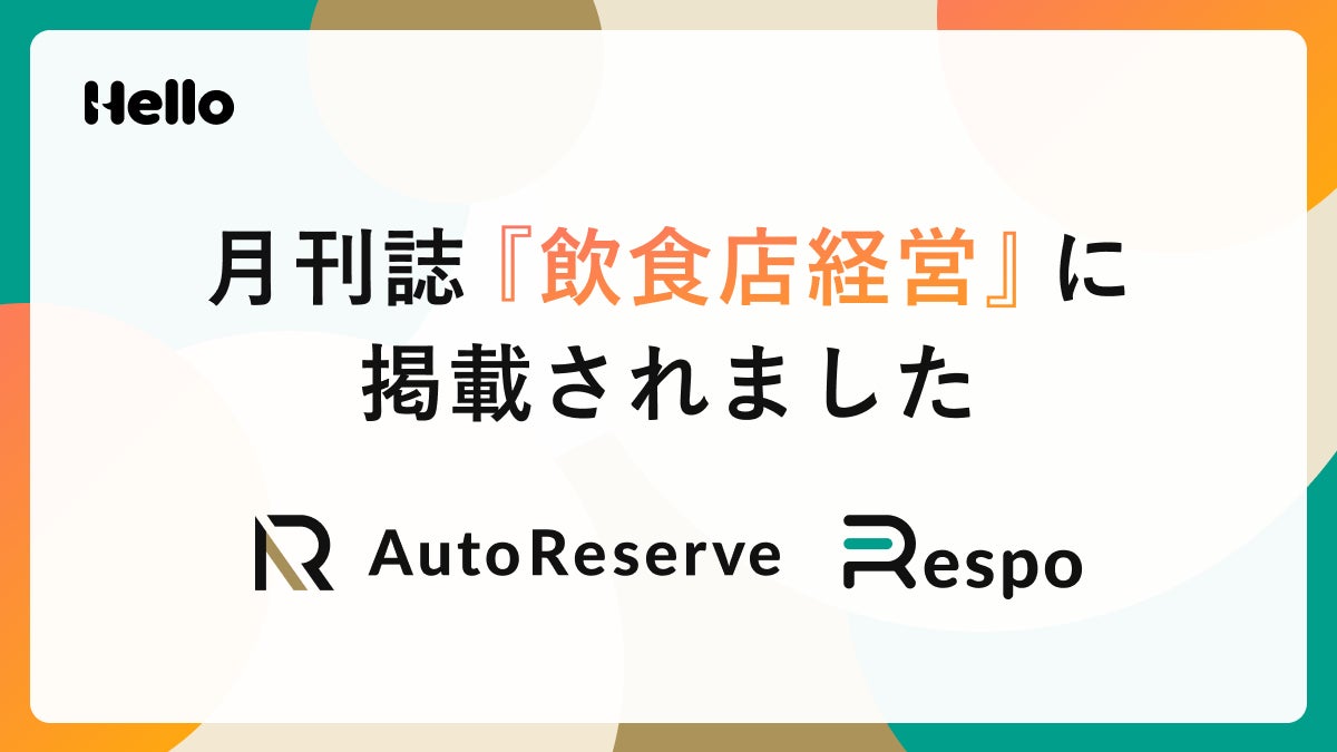 株式会社ハロー(本社:東京都渋谷区、代表取締役:播口 友紀)は、運営するサービス「AutoReserve」と「Respo」について2025年2月号の月刊誌『飲食店経営』に掲載されたことをお知らせいたします。