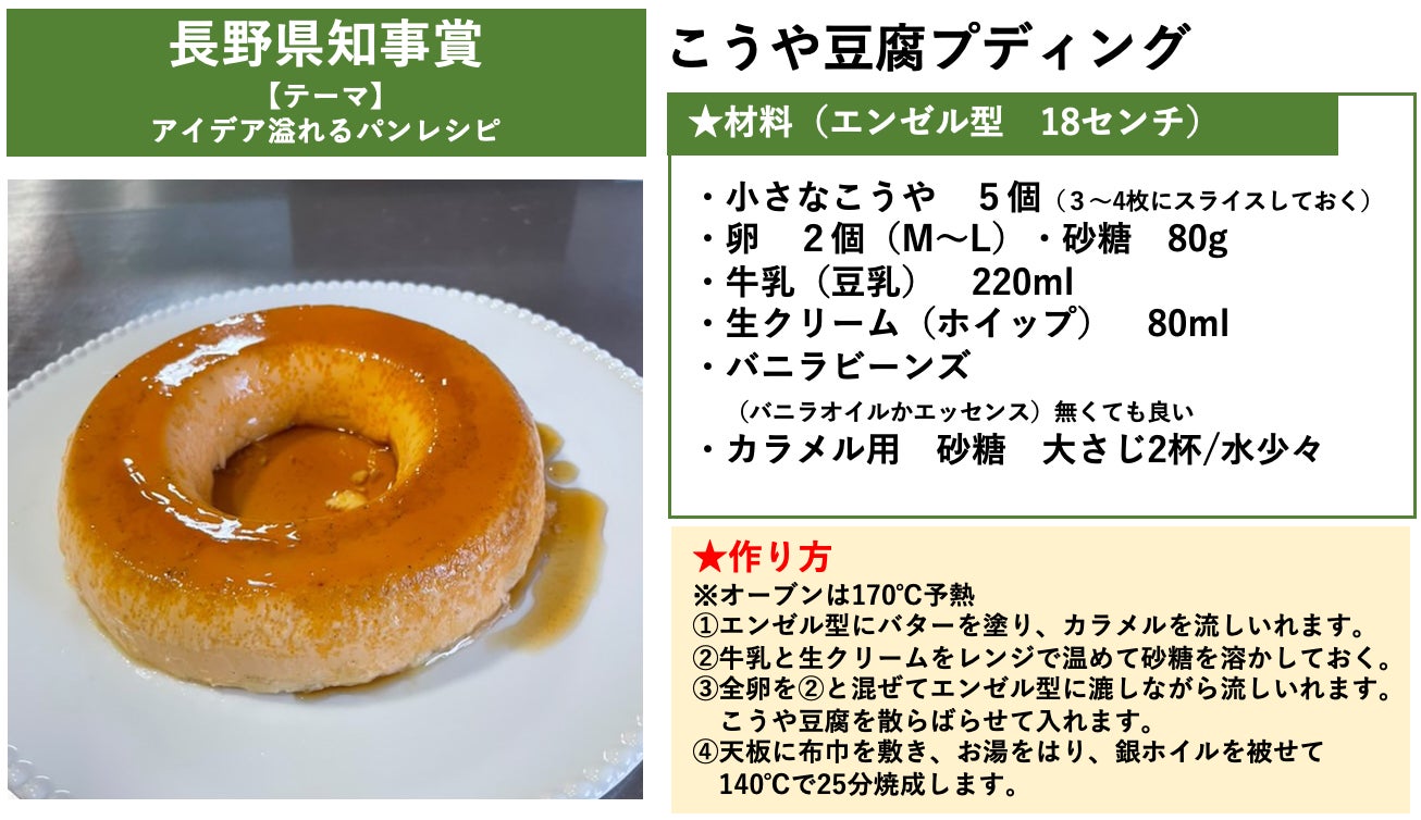 消費者庁長官賞、長野県知事賞、こうや豆腐普及委員会賞を受賞されたレシピは、それぞれのテーマの趣旨に沿った優れたレシピであり、アレンジ次第で様々なレシピに応用できる「こうや豆腐」の魅力を存分に引き出しているではないかと感じています。