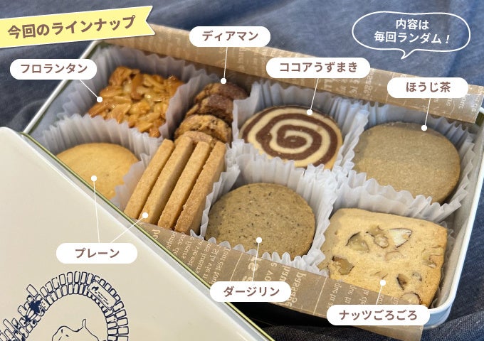 クッキー缶の中身はランダムで、毎回異なるラインナップが楽しめます。毎回どんなクッキーが届くのかワクワク感を味わえます!今回は、前回の注文との比較も行い、どんなクッキーが入っているかをご紹介します。