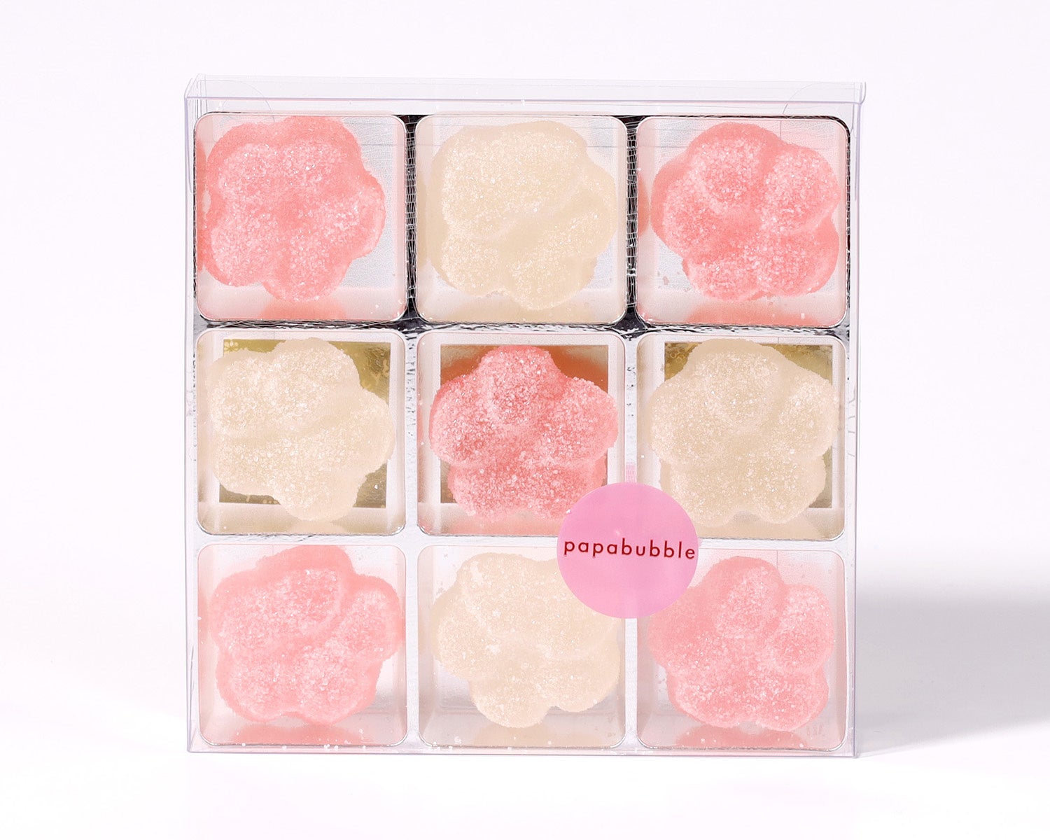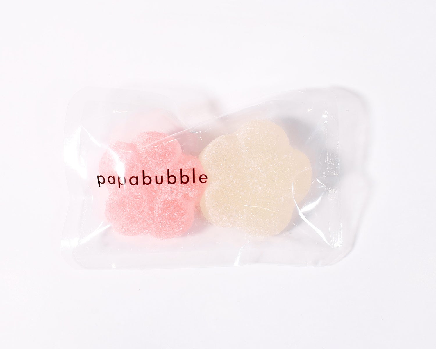 毎年人気の桜モチーフのバブレッツです。ピンクは甘酸っぱい「さくらんぼ」、白は春らしい「桜」のフレーバーで、口いっぱいに春の訪れを感じさせます。可愛らしいお花の形は、春のお祝い事にもぴったりです。