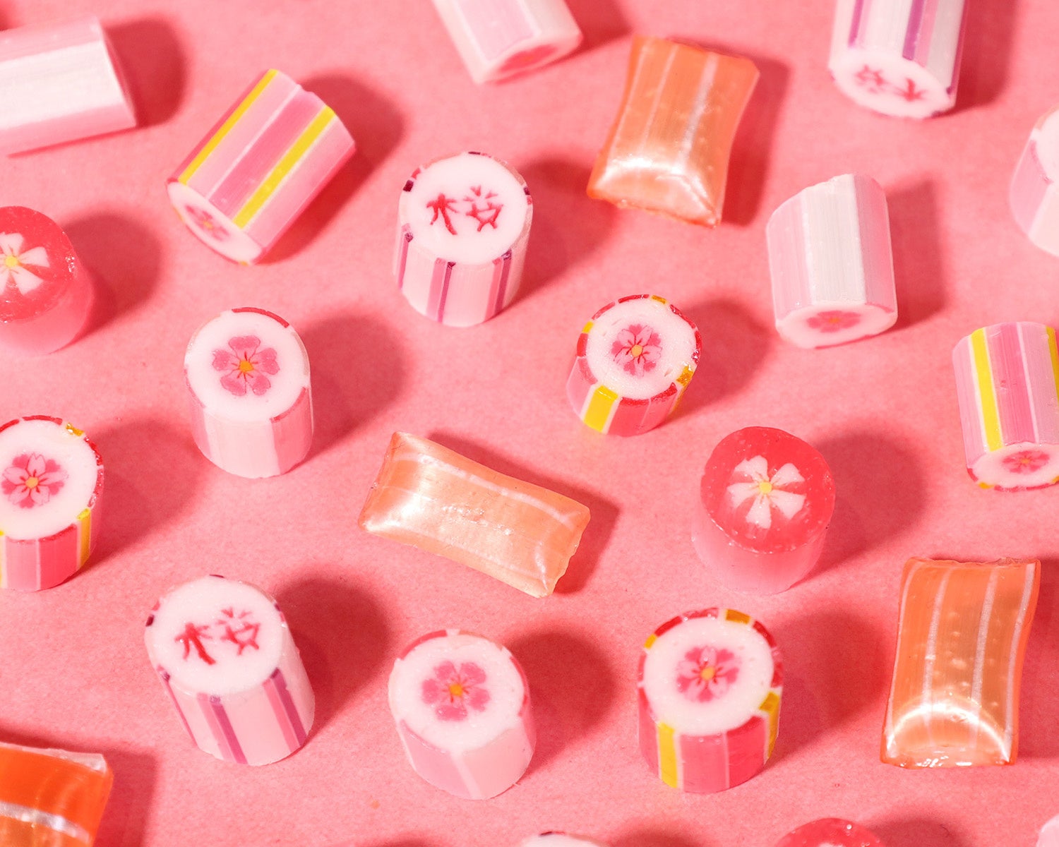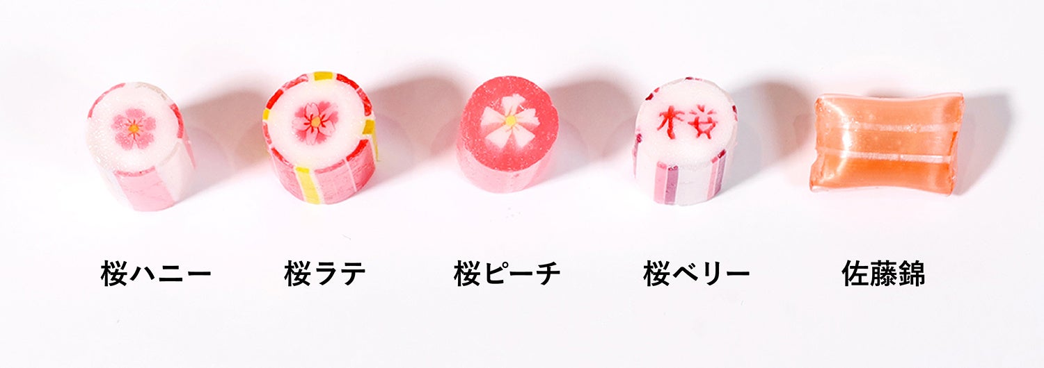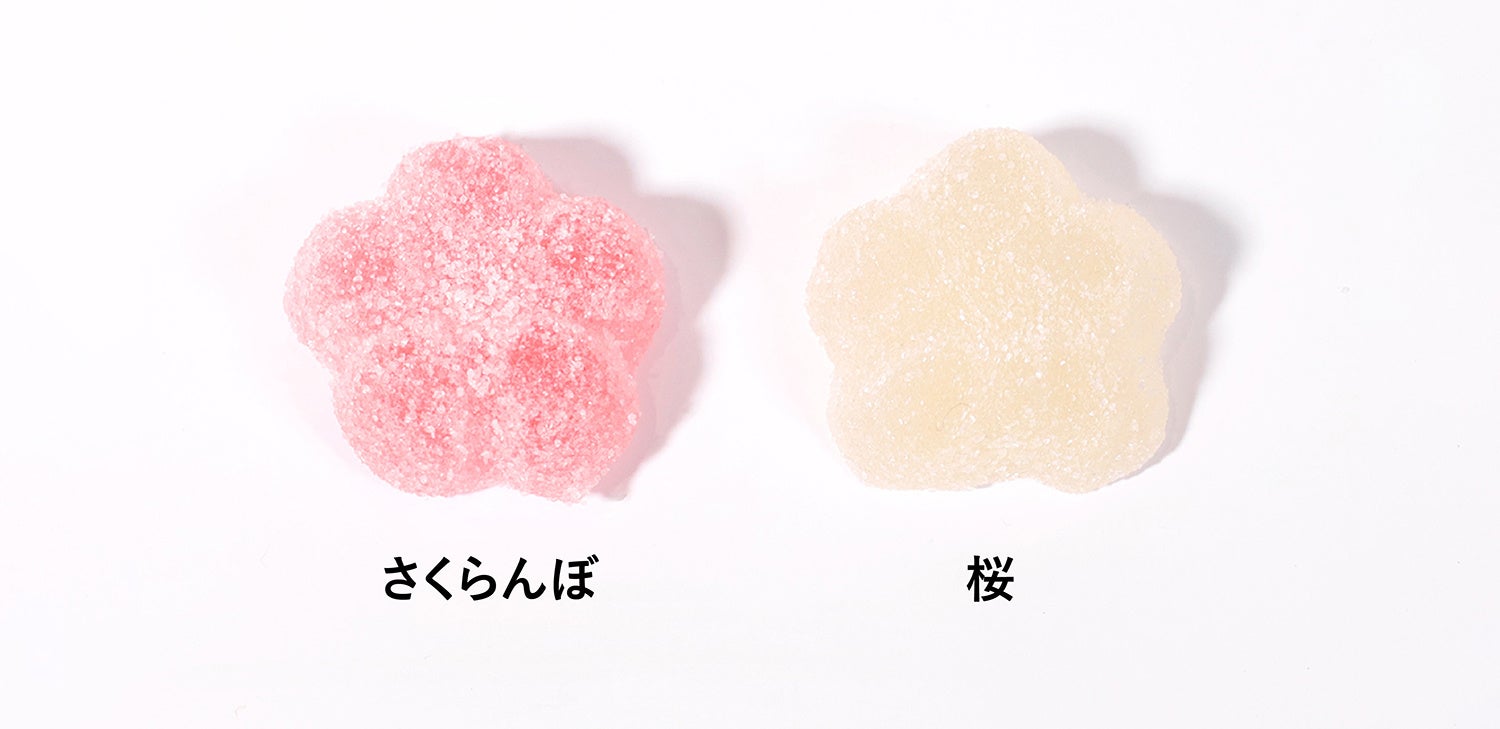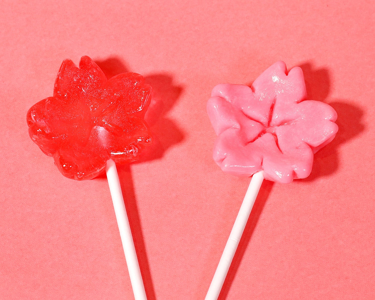 小さな桜の花びらをかたどった、コンパクトなサイズのロリポップが新登場。透明感のあるクリアな「佐藤錦」と、春らしさ満開のピンク色の「桜ベリー」の2種を揃えました。紅茶や炭酸に溶かしながらお召し上がりいただくのもおすすめです。