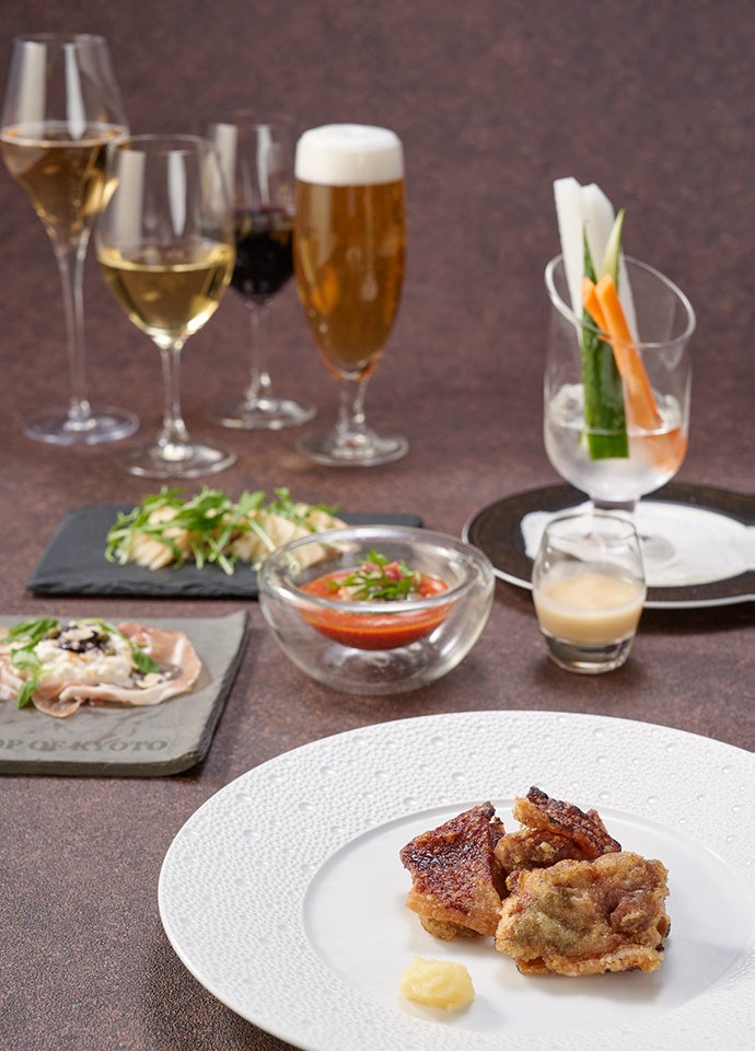 当レストランでは、ゆっくりとお食事をお楽しみいただきたいという想いから、一品ずつ提供するコース料理をご用意いたします。「アタミモダン和食」をコンセプトに、地元で獲れた食材を使用し、ベースとなる「和食」の伝統的な技法と親しみ深い出汁を活かしました。そこに洋風のアレンジを加え、和と洋が調和した新たな味わいをご堪能いただけます。
