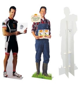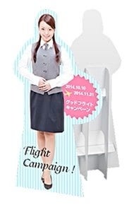 紙製スタンド付き!自由なカッティングで一際目立つ、等身大パネルは展示会やイベント会場、ショッピングモール、店舗、映画館やゲームセンター等のアミューズメント施設などで案内板や宣伝用POPとして人気の商品。自由な形にカッティングできるのが特徴で、視覚効果に優れており、高い訴求力が期待できます。顔だしパネルやカタログ配布用のディスプレイなど、アイデア次第でとてもユニークな販促用POPにすることができます。