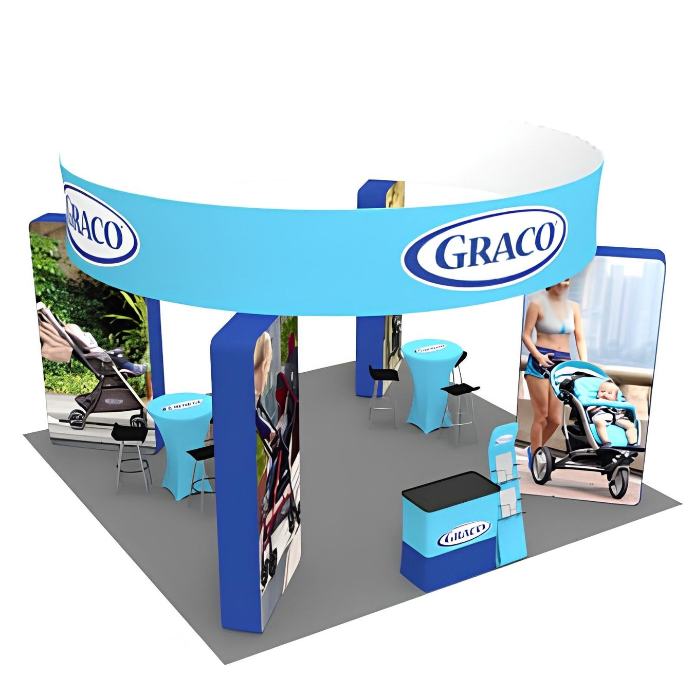 大型バックボードのケースには、天板も付いているのでカウンターテーブルとしても使用可能で、側面には印刷もできるので、目を引くオリジナルなカウンターも作成できます。