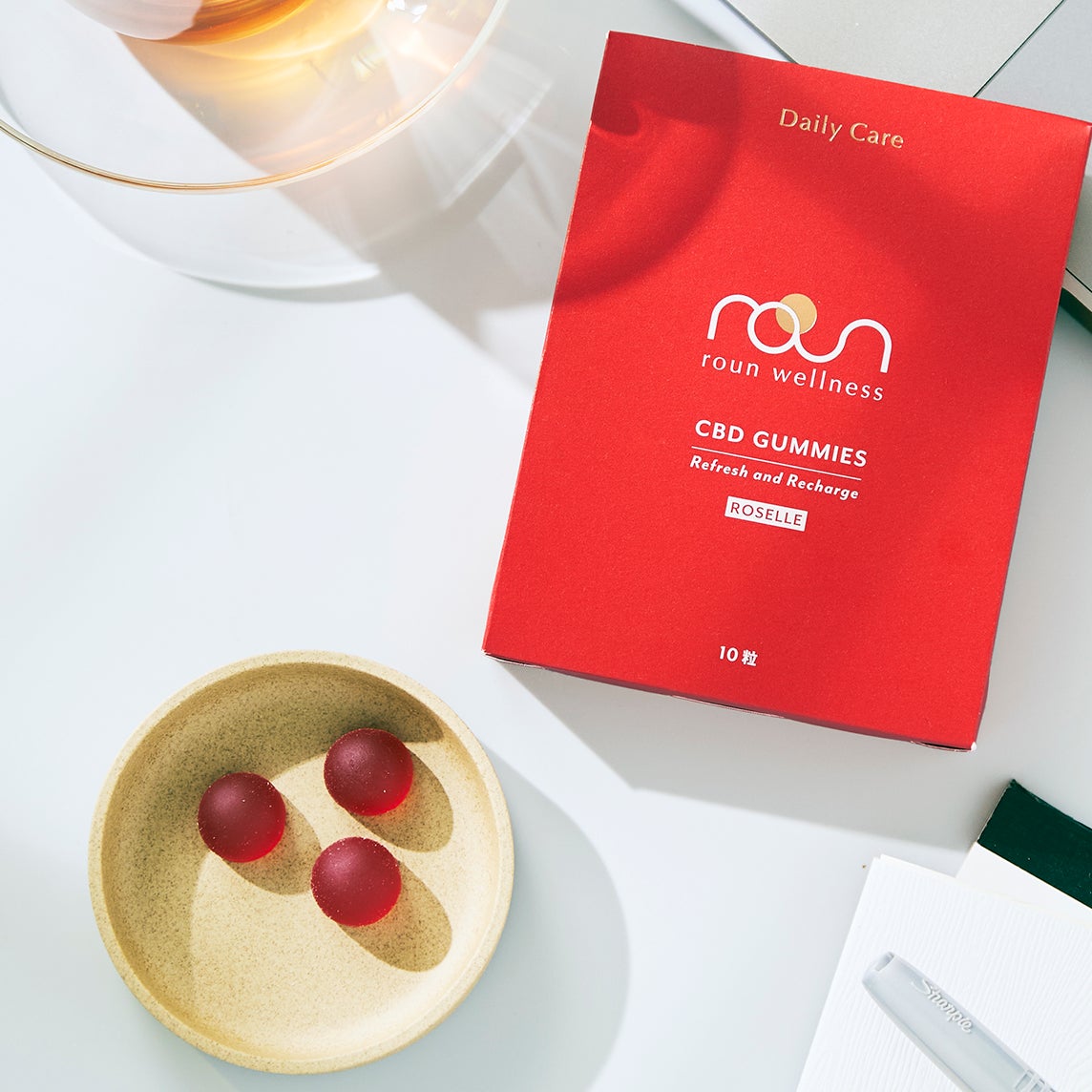 『CBDグミ』は、クエン酸やビタミンCを含むローゼルと、穏やかなひとときをサポートするCBDを1粒に30mg配合した、手軽に楽しめるグミタイプのCBDです。朝や昼の息抜きに手にとってもらえるよう、ローゼル本来の爽やかな酸味を活かしつつ、てんさい糖のまろやかな甘みを加えることで、CBDをおやつ感覚で無理なく取り入れられる味わいに仕上げました。