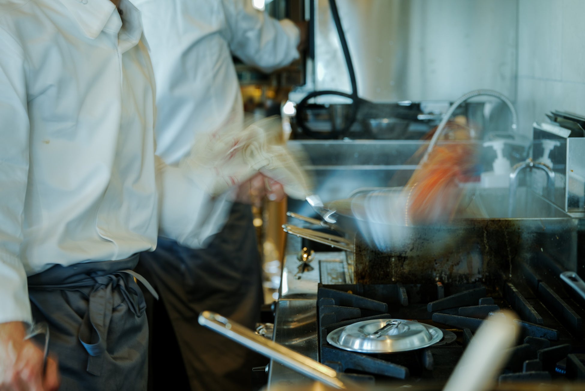 しかしロビンでは、甘エビの殻をローストしてじっくりと抽出した「香ばしい旨み」、牡蠣の出汁を合わせて「深いコク」、トマトを“隠し味”にとどめ、あくまで魚貝の出汁で仕上げて、素材だけで味を組み立てるこの出汁は、まさに“飲み干せるソース”。これが仕込み手間300%。