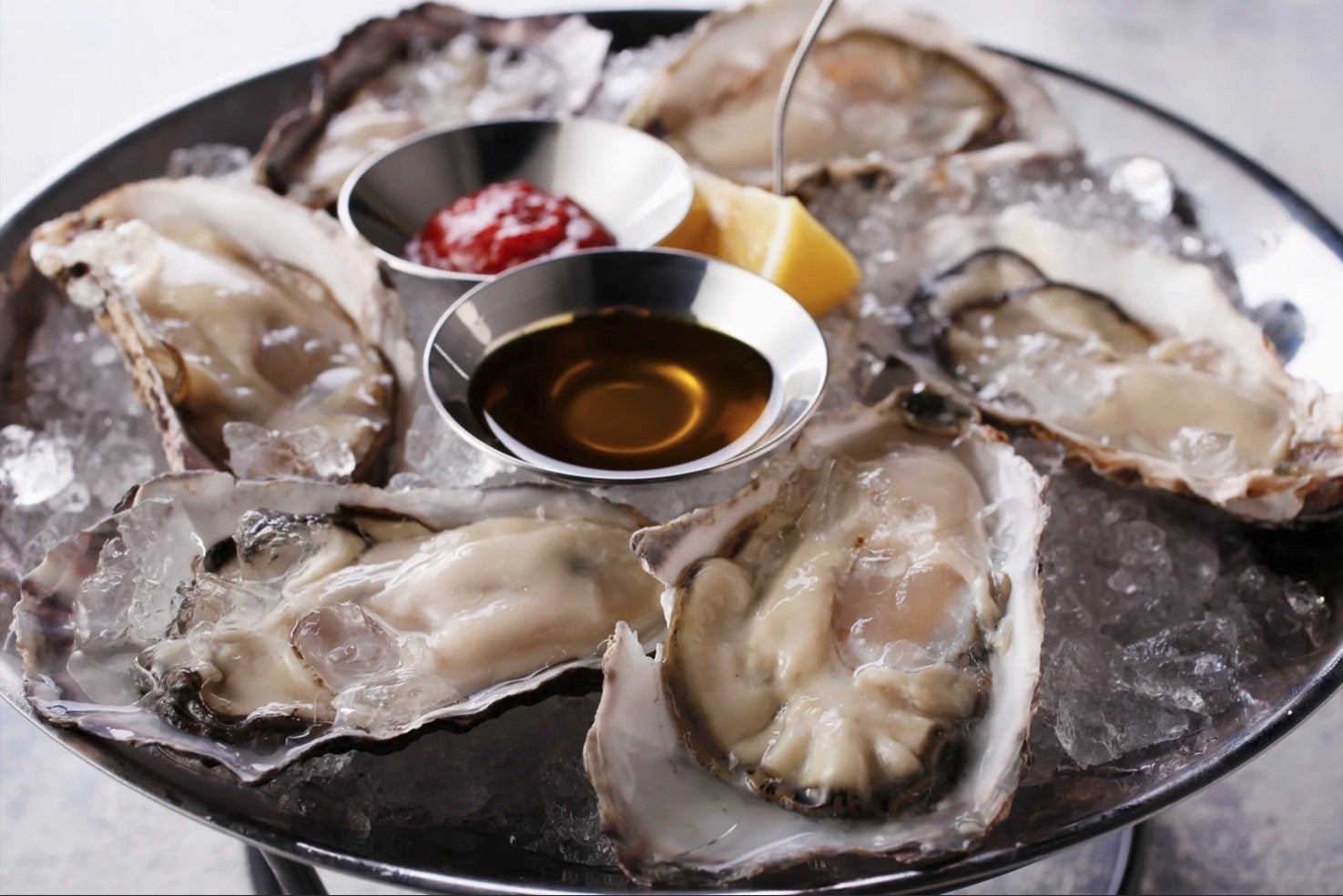 ■生牡蠣は全国から常時5種を厳選仕入れ 「ロビン」では、生牡蠣も全国の漁場から季節に合わせて常時5種をご用意。その日のおすすめを盛り合わせたプラッターは、牡蠣好きはもちろん!初めての方にも食べ比べていただける人気メニューです。