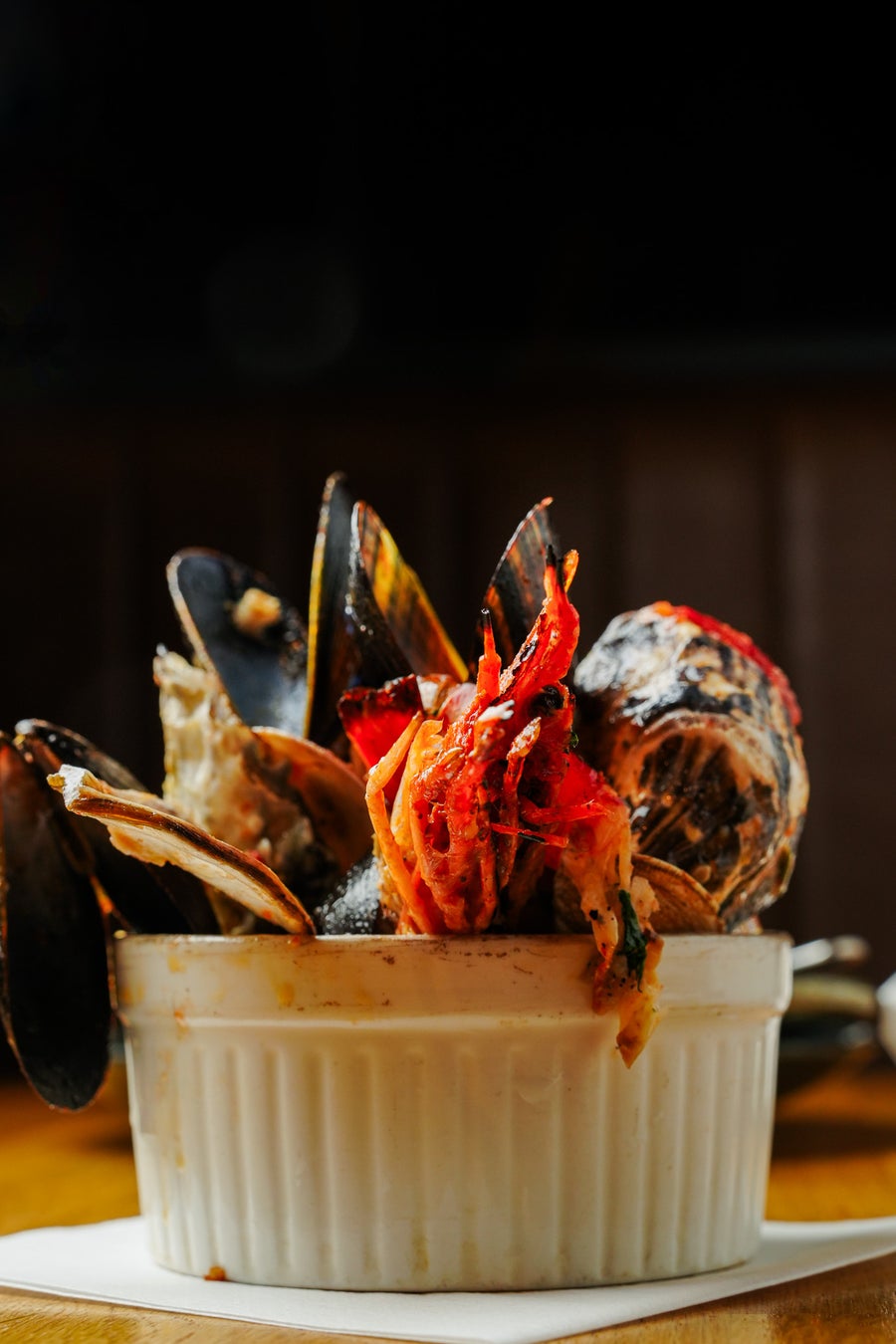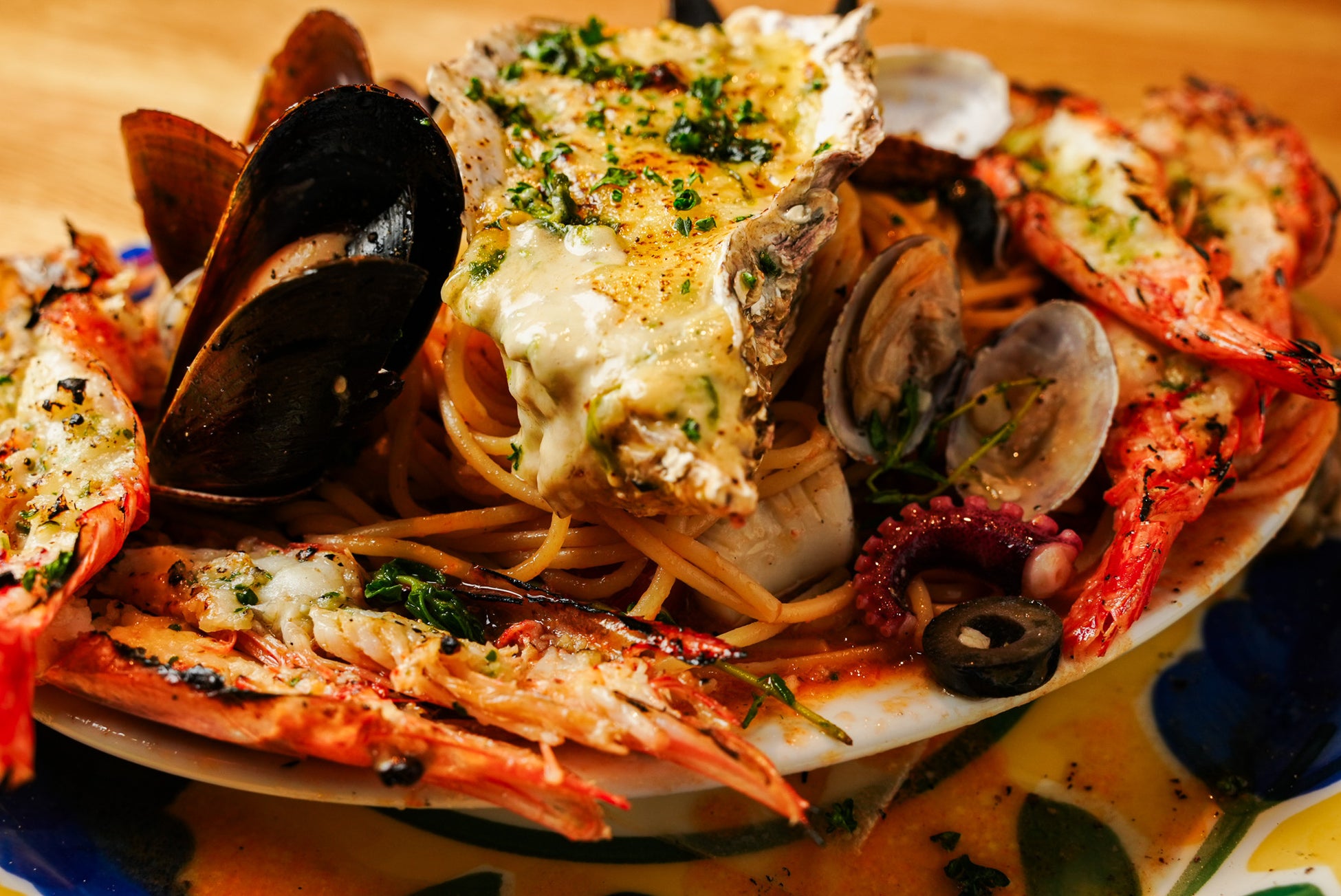 ■“食べ終えたあとも驚きが残る”体験を このペスカトーレを食べ終えるころ、テーブルには魚貝の殻がこんもりと残ります。牡蠣の殻、海老の頭、ムールやあさりの貝殻——その量こそが、惜しみなく使われた魚貝の証。 見た目でも食後でも、しっかり“海の恵みを味わった”という余韻が残るのも、この一皿の魅力です。