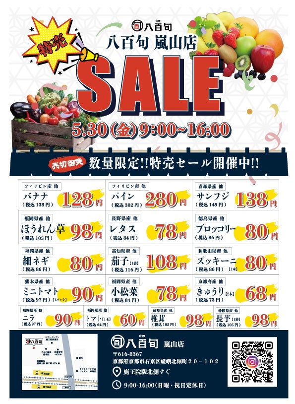 ■5月30日(金)9:00~ 八百旬 嵐山店